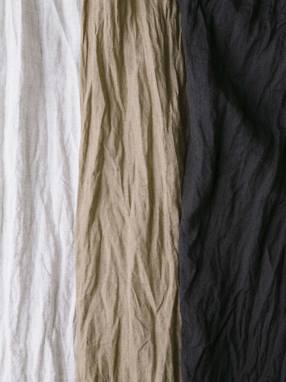 リネンとラミーの平織り生地で、ソフトなタッチとハリ感が特長です。