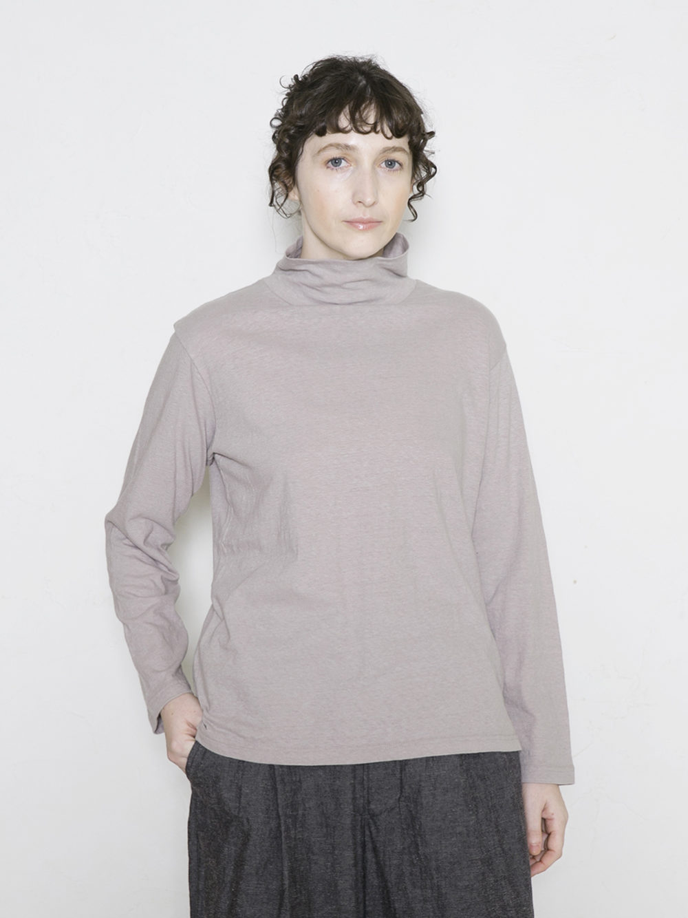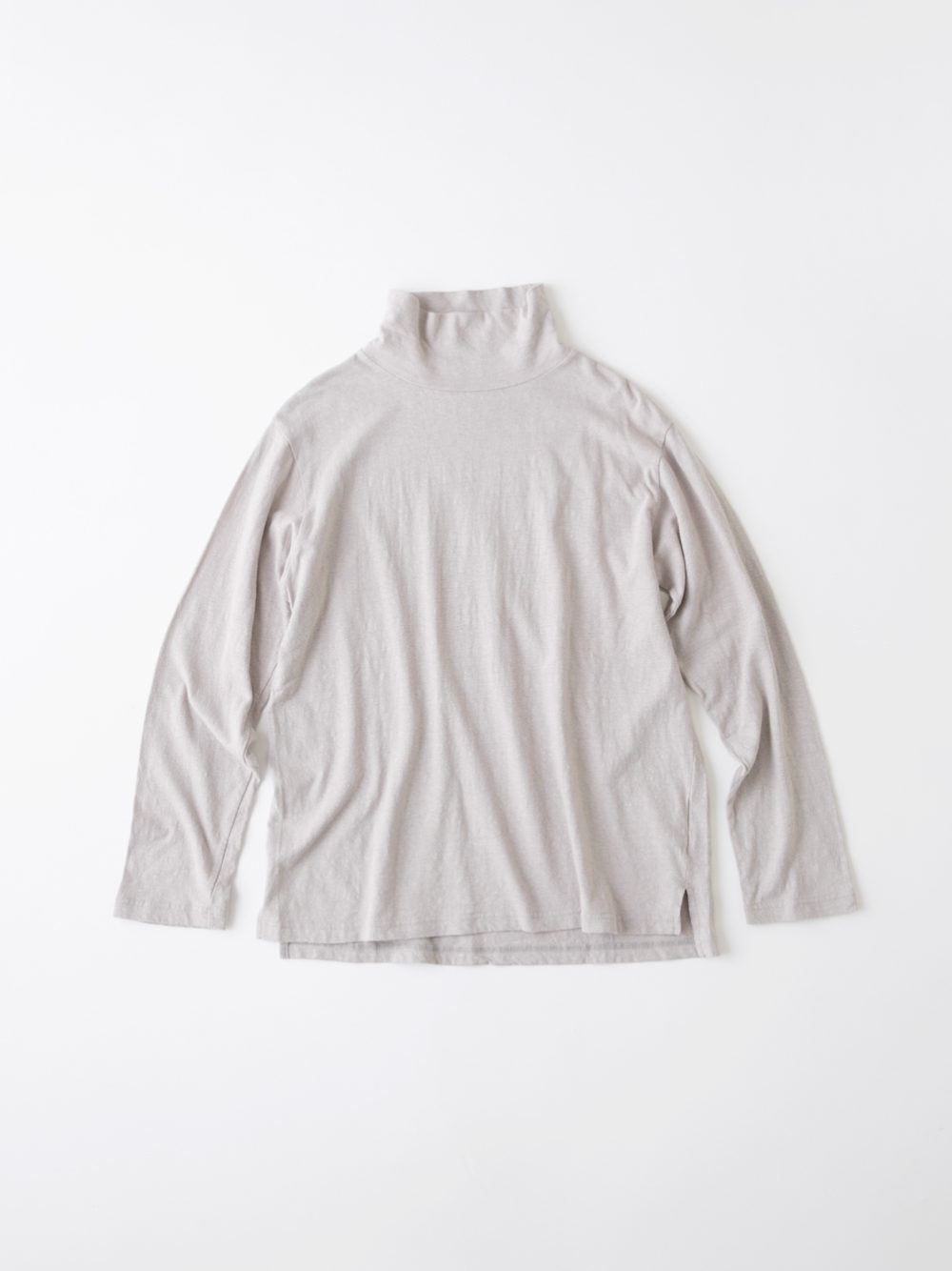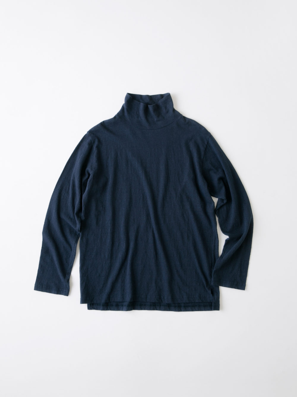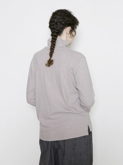 Cotton Linen Plainstitch ハイネック長袖Tシャツ