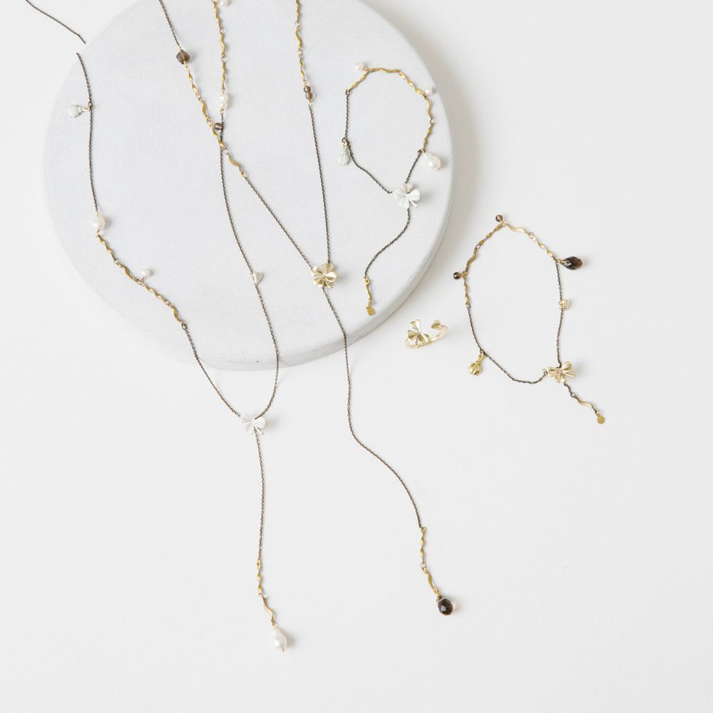 2026SSシーズンの新作アクセサリーは、細めのチェーンにパーツを散りばめたデザインの2シリーズ。洋服を選ばず、さっと身に着けられる気軽さに、シンプルだけどシンプルすぎない、遊び心を感じるアクセサリーです。