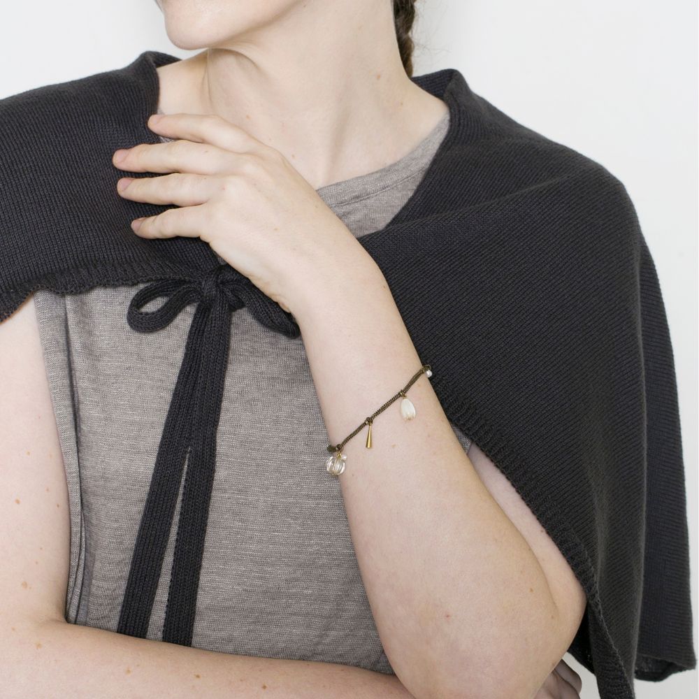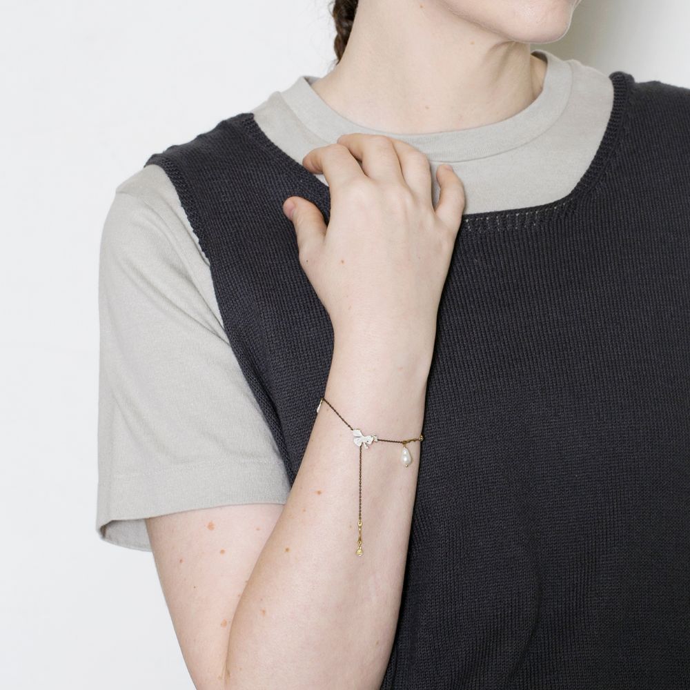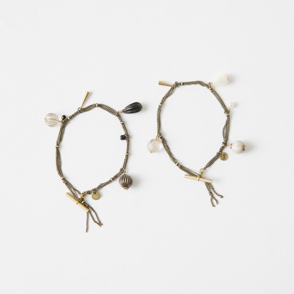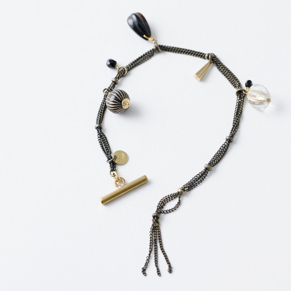 こちらはブレスレットバージョン。基本的な仕様はラリエットと同じで、束ねたチェーンの間に留め具を通して着用します。