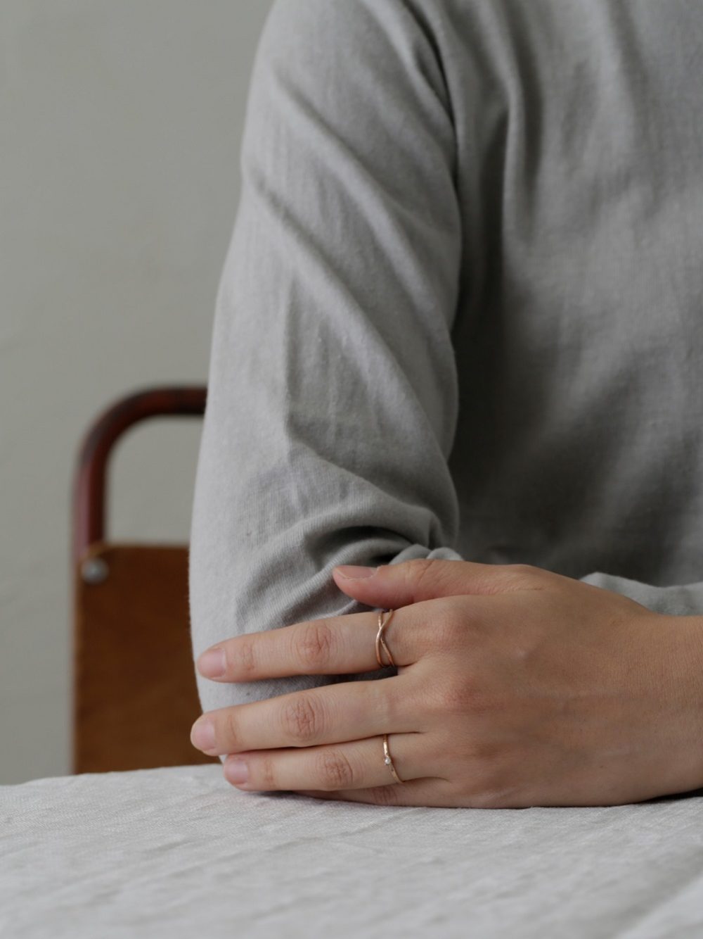リング表面につち目加工を施し、華奢なデザインながらも存在感があります。