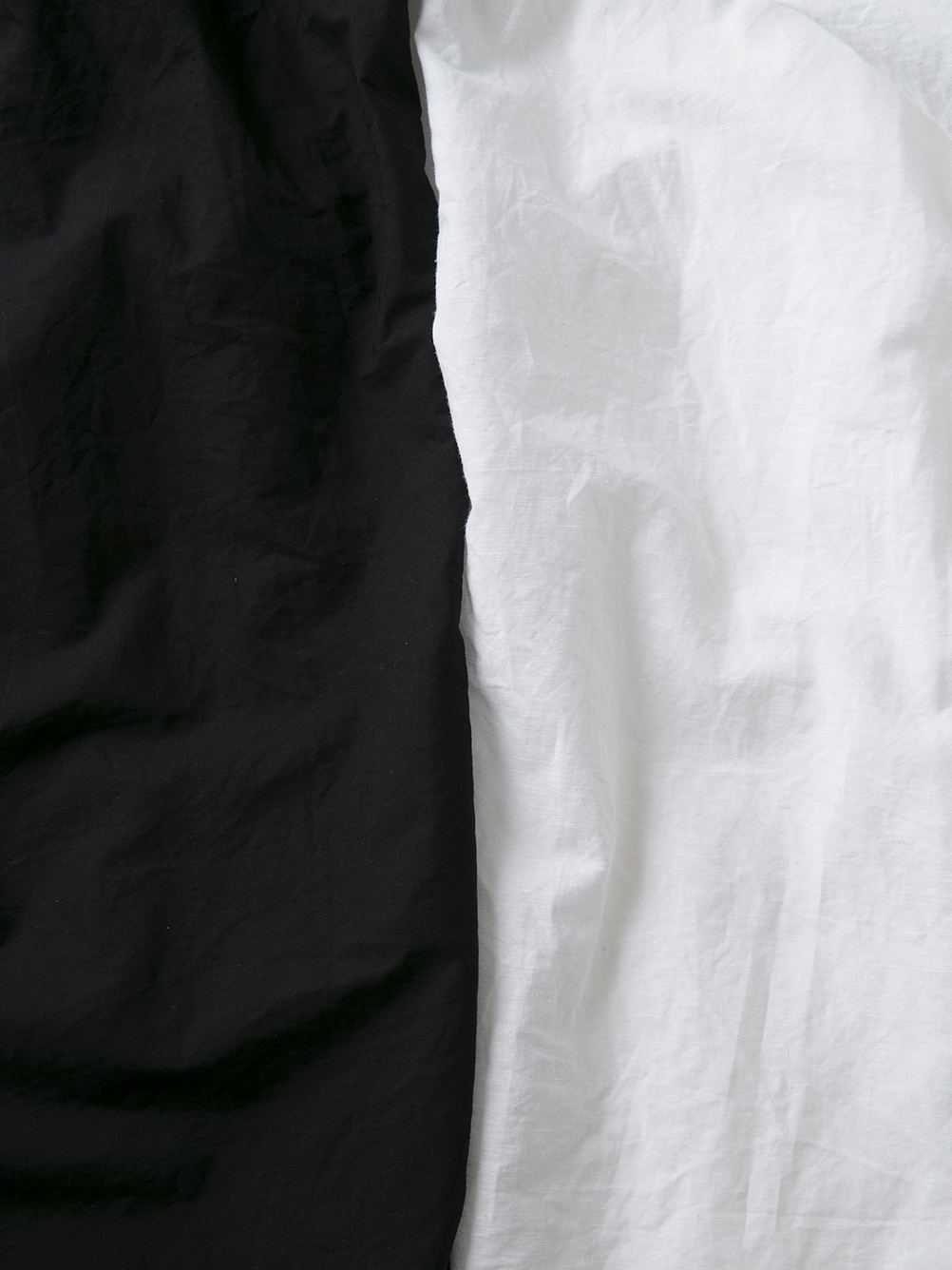 細番手のコットンリネン混紡糸を使用して、旧式のシャトル織機でゆっくりと丁寧に織った生地。