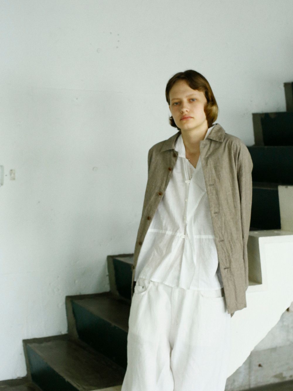 細番手のコットンリネン混紡糸を使用して、旧式のシャトル織機でゆっくりと丁寧に織った生地。
