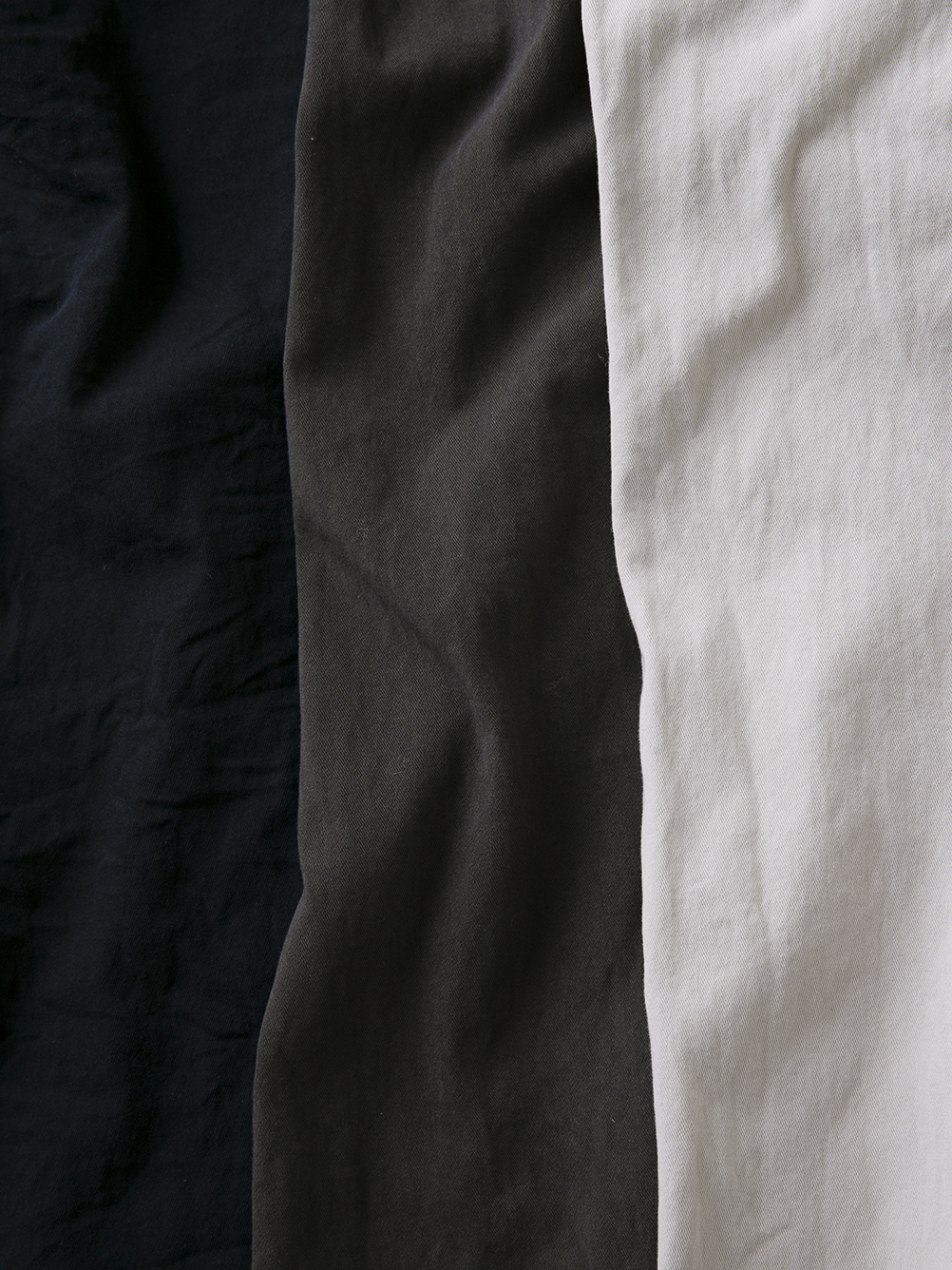 少しシャリ感のある生地で、強撚糸特有のハリ感もあり、通年着用できる素材です。