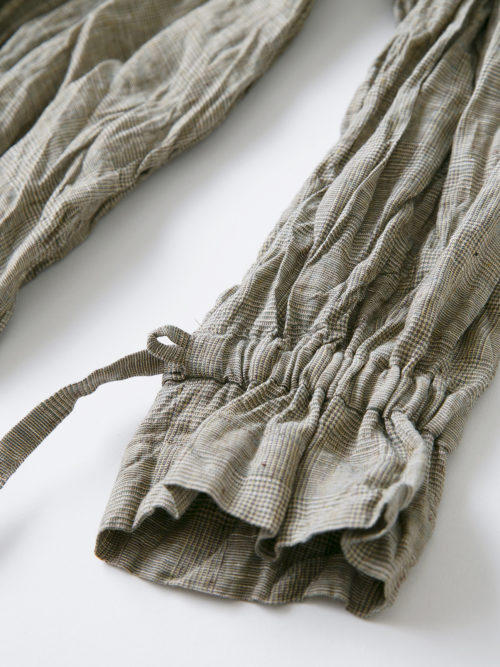 袖口に通した紐でボリューム感を調整していただけます。
