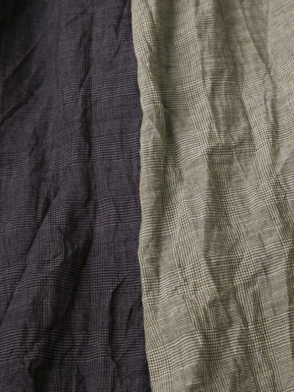 経糸にリネン、緯糸にリネンレーヨン混紡糸を使用した細番手のオリジナルグレンチェック生地。