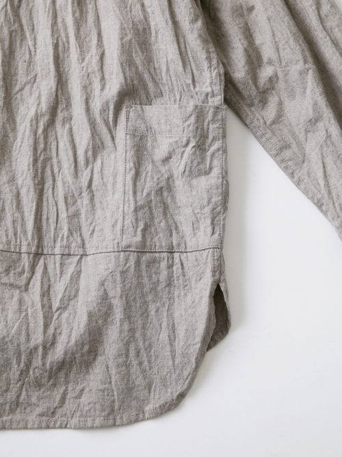 旧式のシャトル織機でゆっくりと高密度に織り上げた生地に、揉みこむような洗い加工を施し、素材本来のナチュラルな魅力を引き出しました。