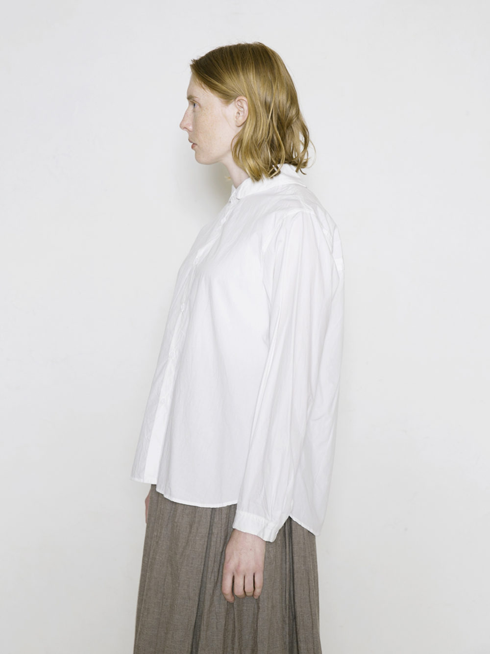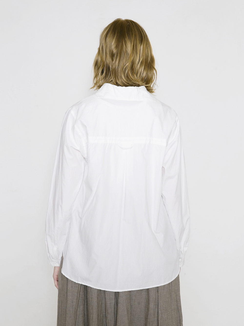 小ぶりの衿で、歳を重ねても着やすいので、定番の1着としておすすめのブラウスです。