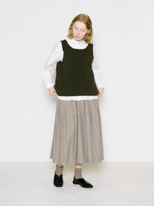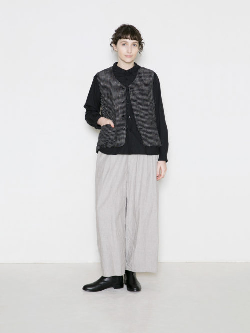 台衿があるため、ニットなど重ねてきても衿がしっかりと立つので、衿をポイントにしたスタイリングが出来ます。