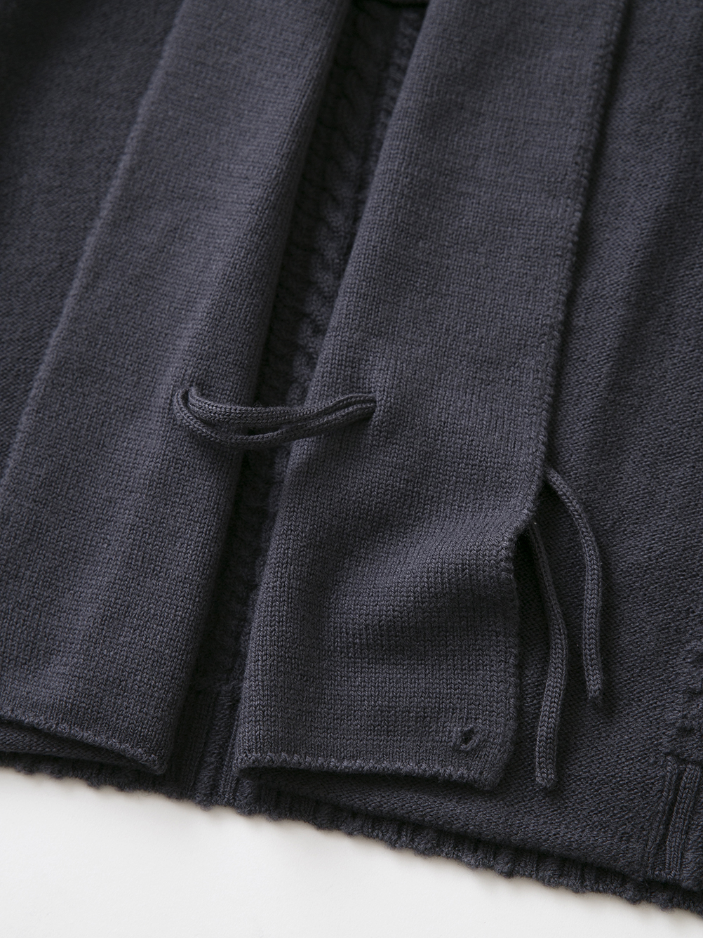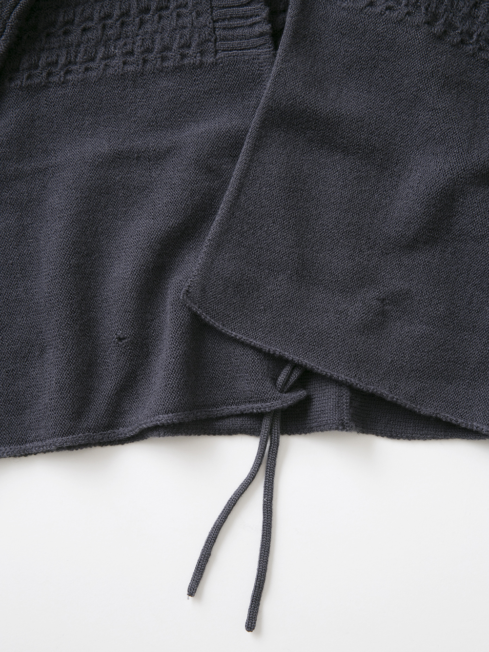 上下逆さでの着用も可能で、着丈や首周りを変えたり、ホールに紐を通してアレンジを楽しめます。