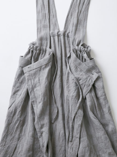 その際にはボタンを留めずに、ウエストの紐をぎゅっと縛って、ツバメのしっぽのようなシルエットにもアレンジできます。