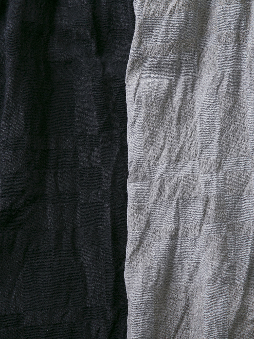 同色系のリネン糸とウール糸を使用し、昼夜織りで立体感と陰影を表現しています。