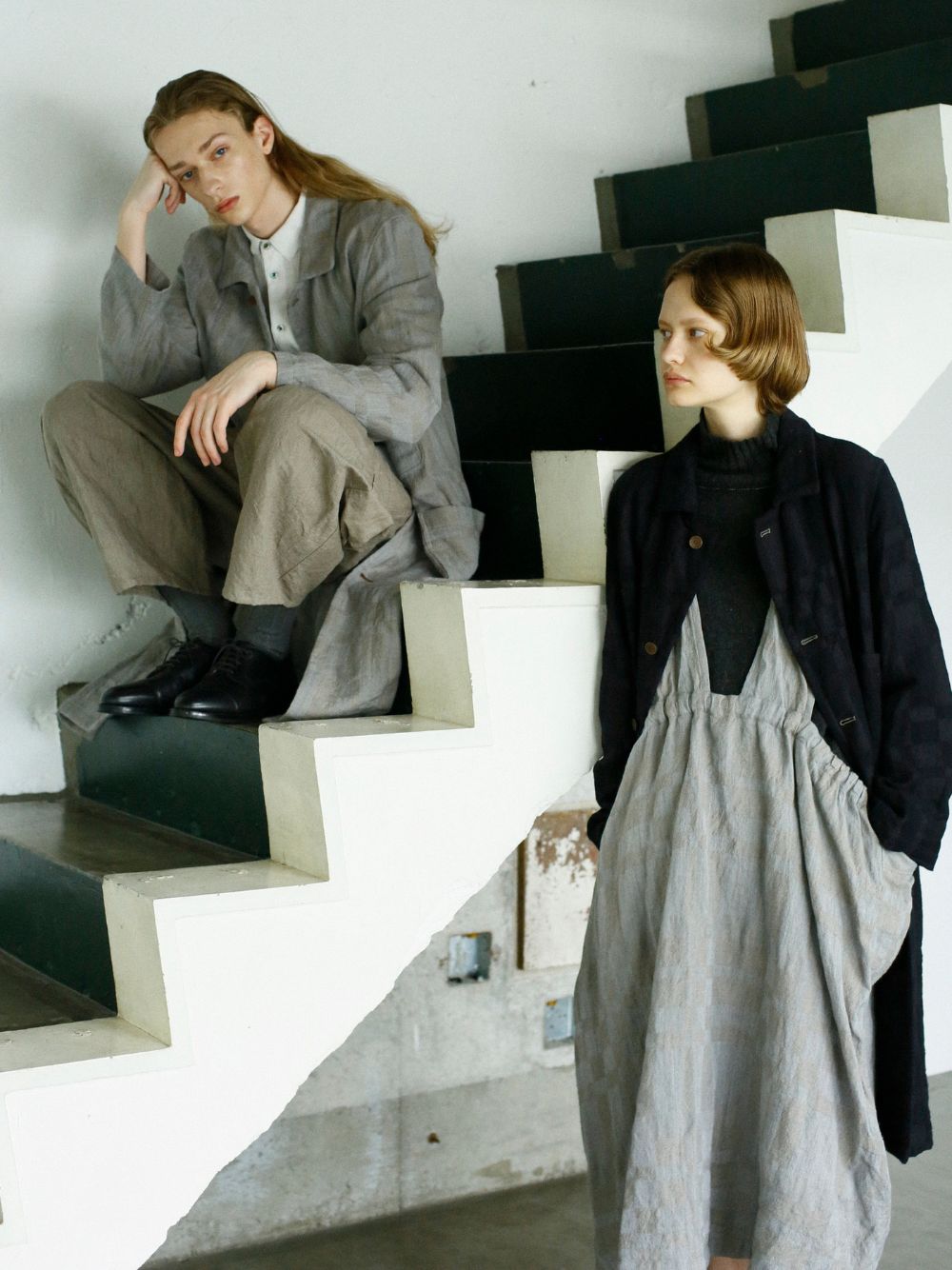 ヴラスブラムのオリジナル秋冬素材を代表するリネンウールの昼夜織り(表と裏で異なる色がでる綾織りの一種)チェックシリーズ。
