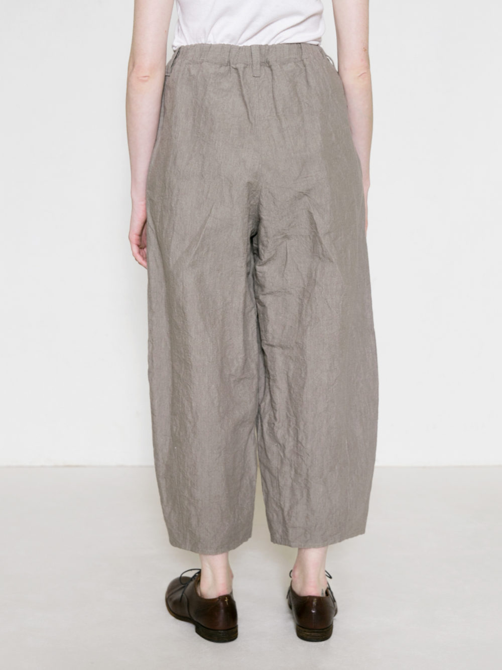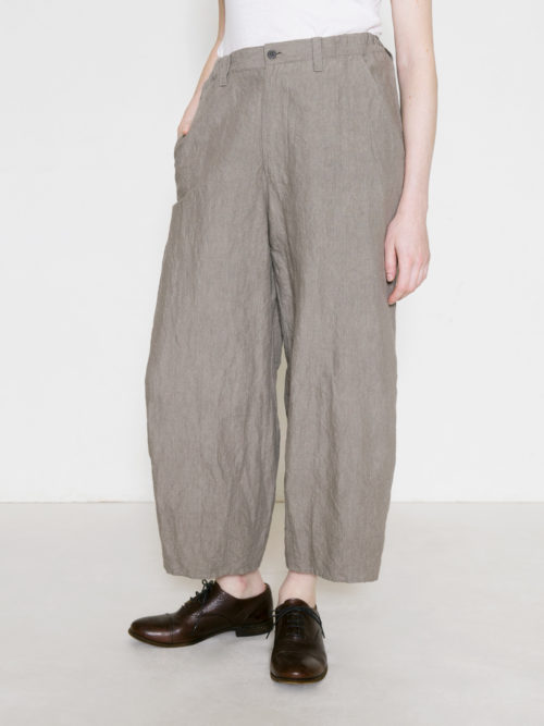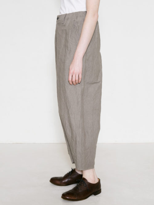 裾にダーツを施したゆったりシルエットのパンツ。