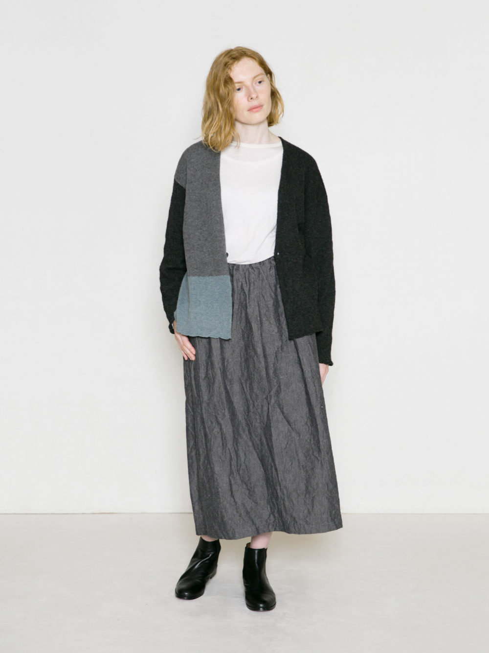 少しだけ前後差をつけた裾にはスリットを入れて、ツバメの尻尾をイメージしました。