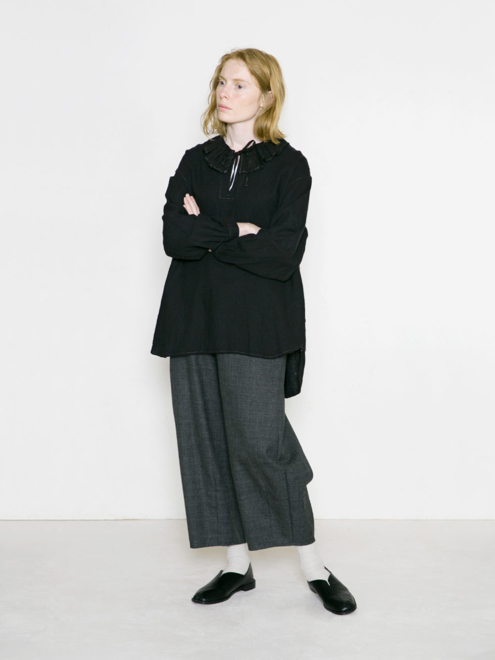 Brushed Linen Cotton フリルカラープルオーバー