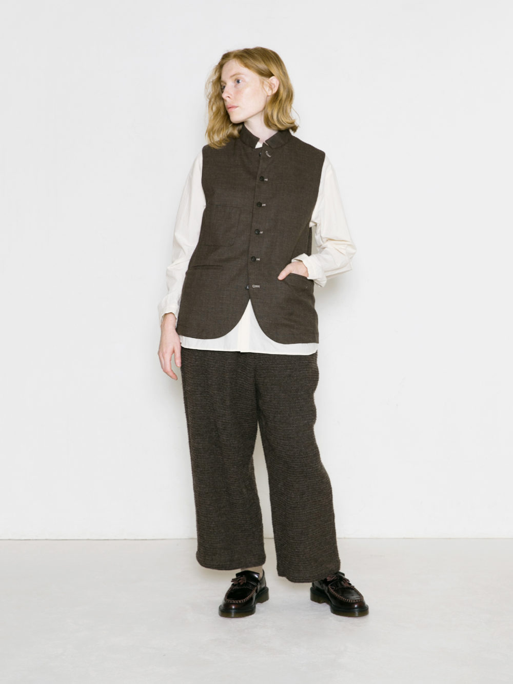 太番手のコルトレイクリネン先染め糸と、シェットランドウールを使用したオリジナルワッフル生地です。