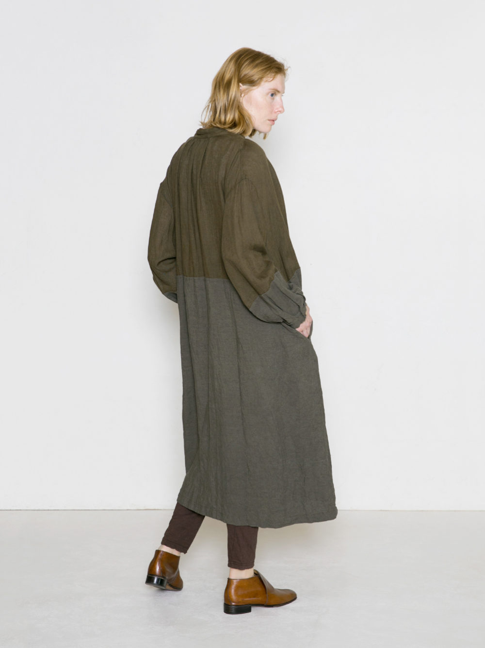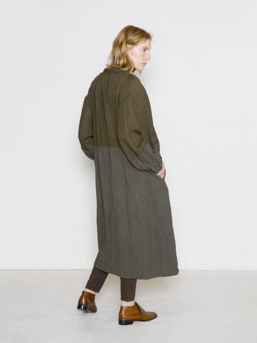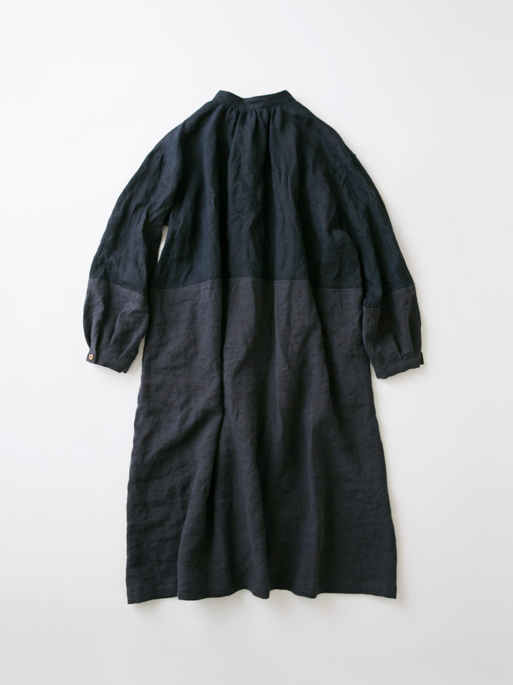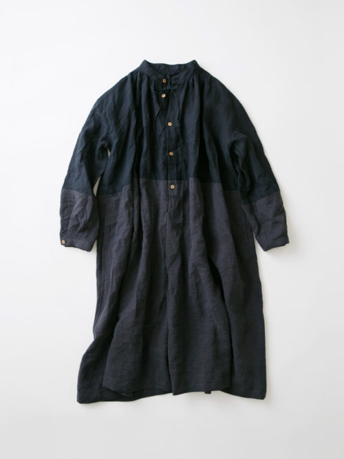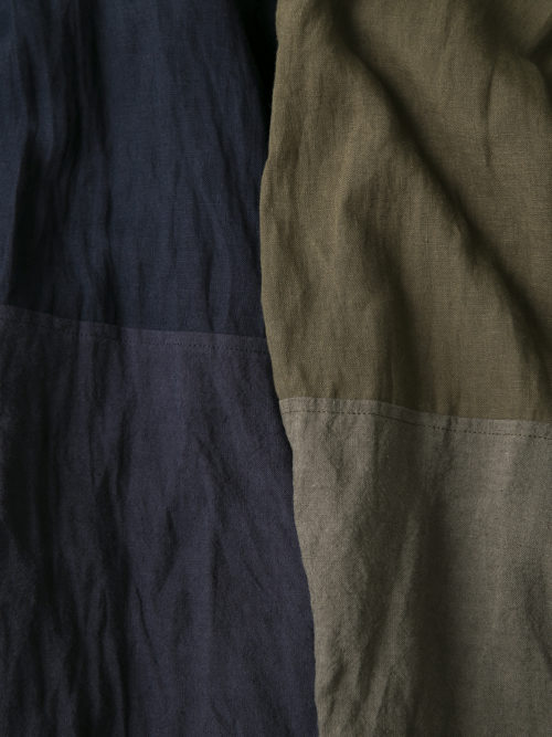 リネンの別生地で切り替え、濃淡をつけています。