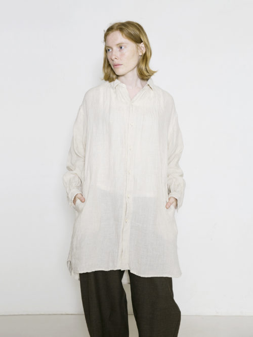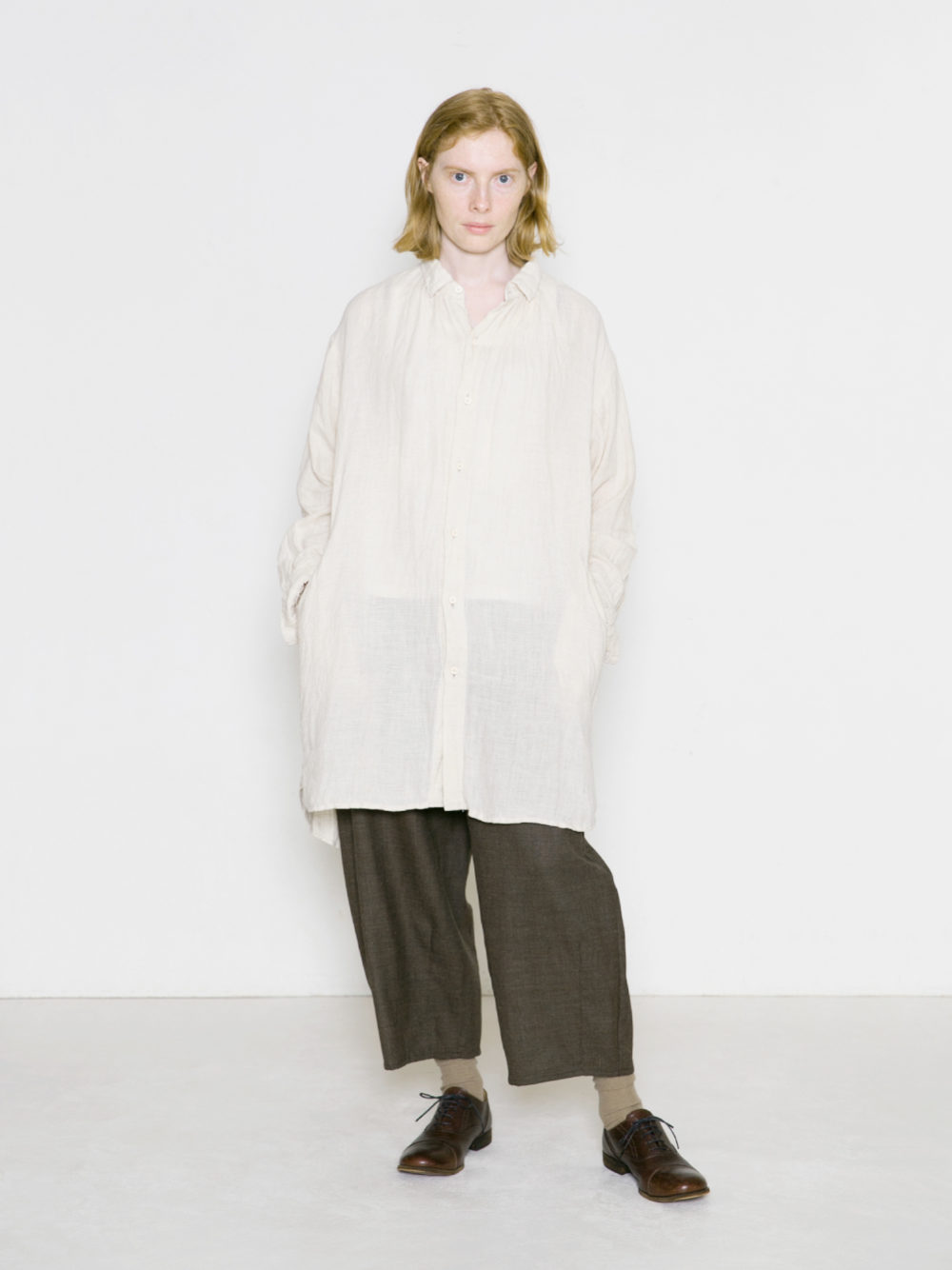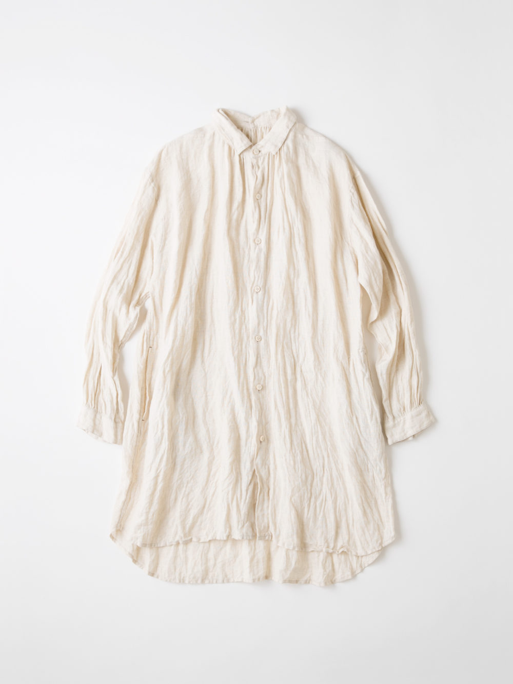 やや厚みのあるリネン100%の平織り生地で、ガーゼのようなソフトな風合いが特長です。