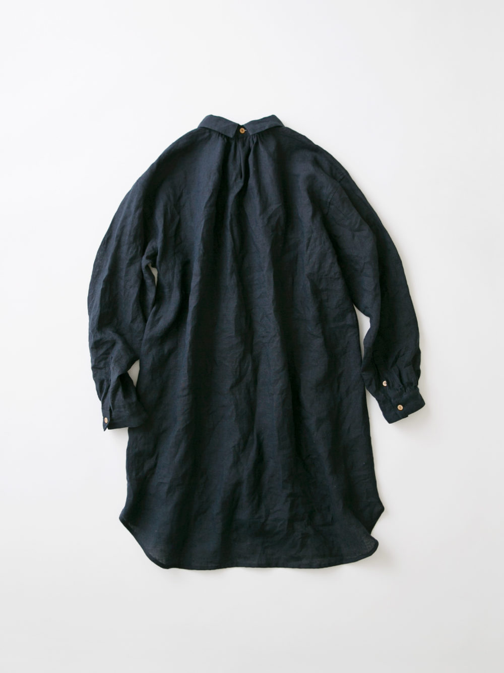 一見シンプルなデザインですが、前ボタン1~2個と、後ろボタンを外すとオフネック風に着ることができます。