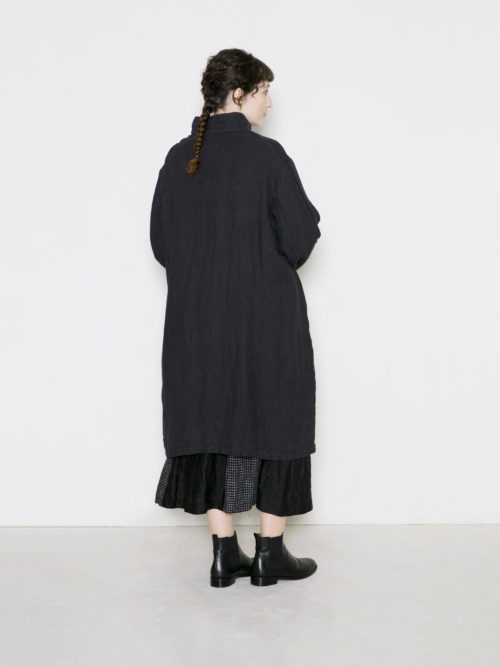 スタンドカラーの衿がポイントで、ボタンを外したアレンジも可能です。