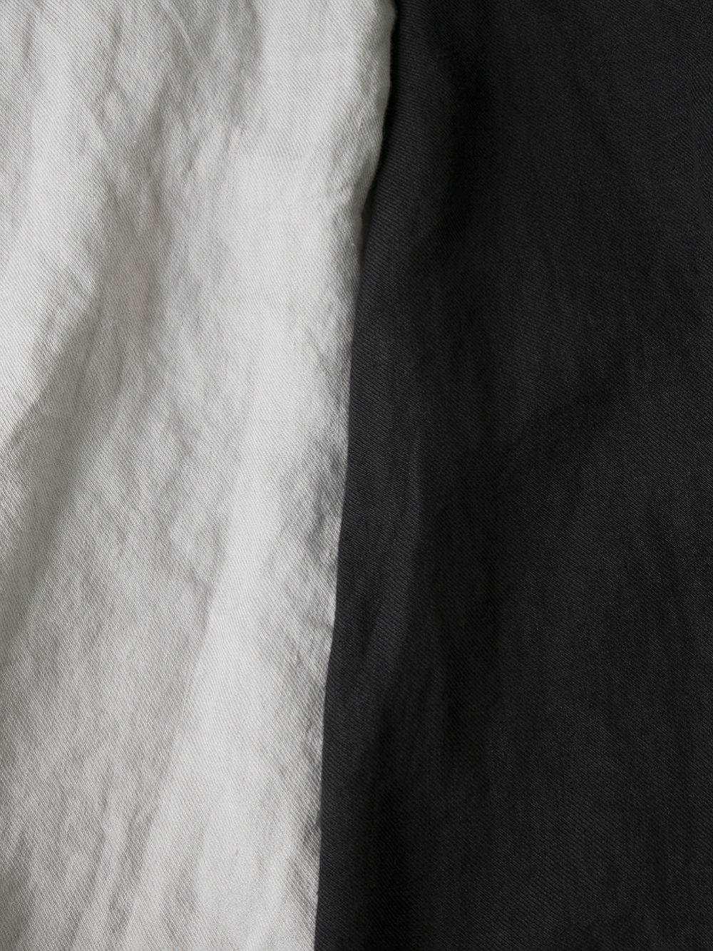 リネン100%のツイル生地を、より柔らかく仕上げるために揉み込むように洗い加工を施しました。
