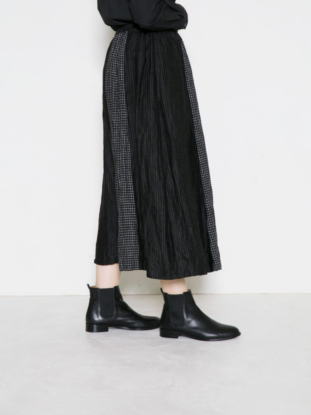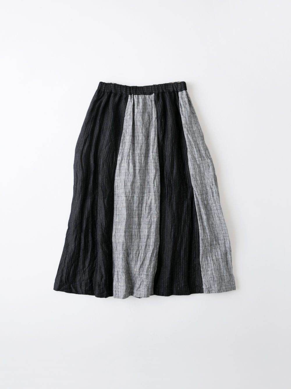 チェック柄とストライプ柄とのコンビスカート。