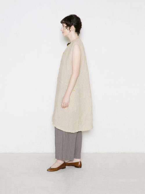 若干Aラインのシルエットで、ボタンを全て留めても動きやすいデザイン。
