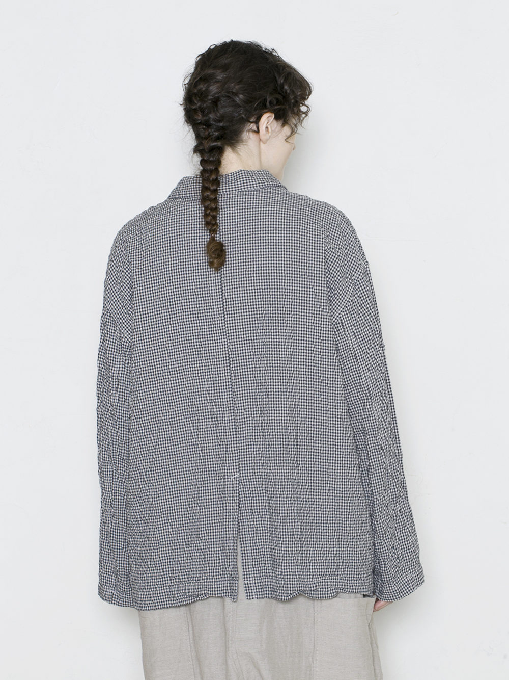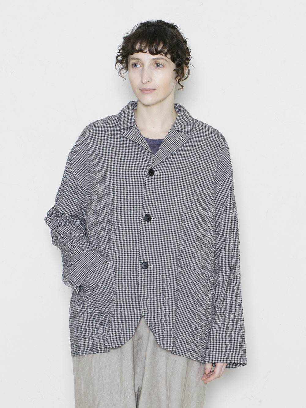 フロント左右にアウトポケットを、左胸に内ポケットを配しています。