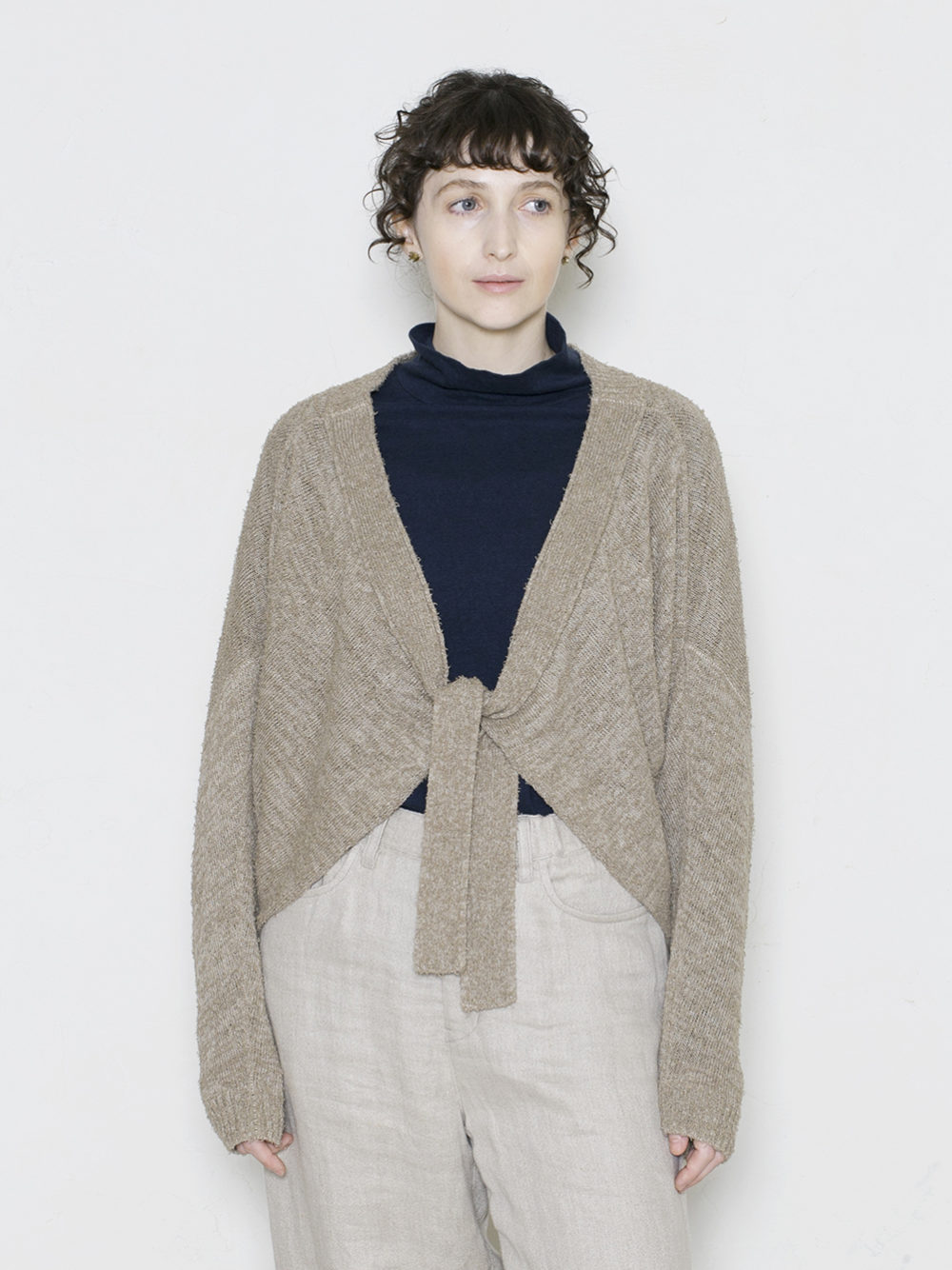 ヘンプと綿のカールヤーン(Snarl Yarn)を引き揃えたミドルゲージニットシリーズ。