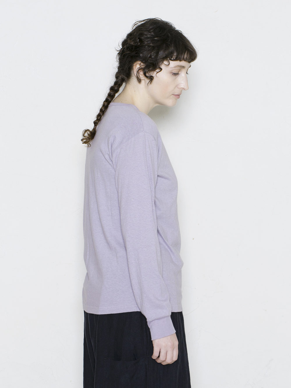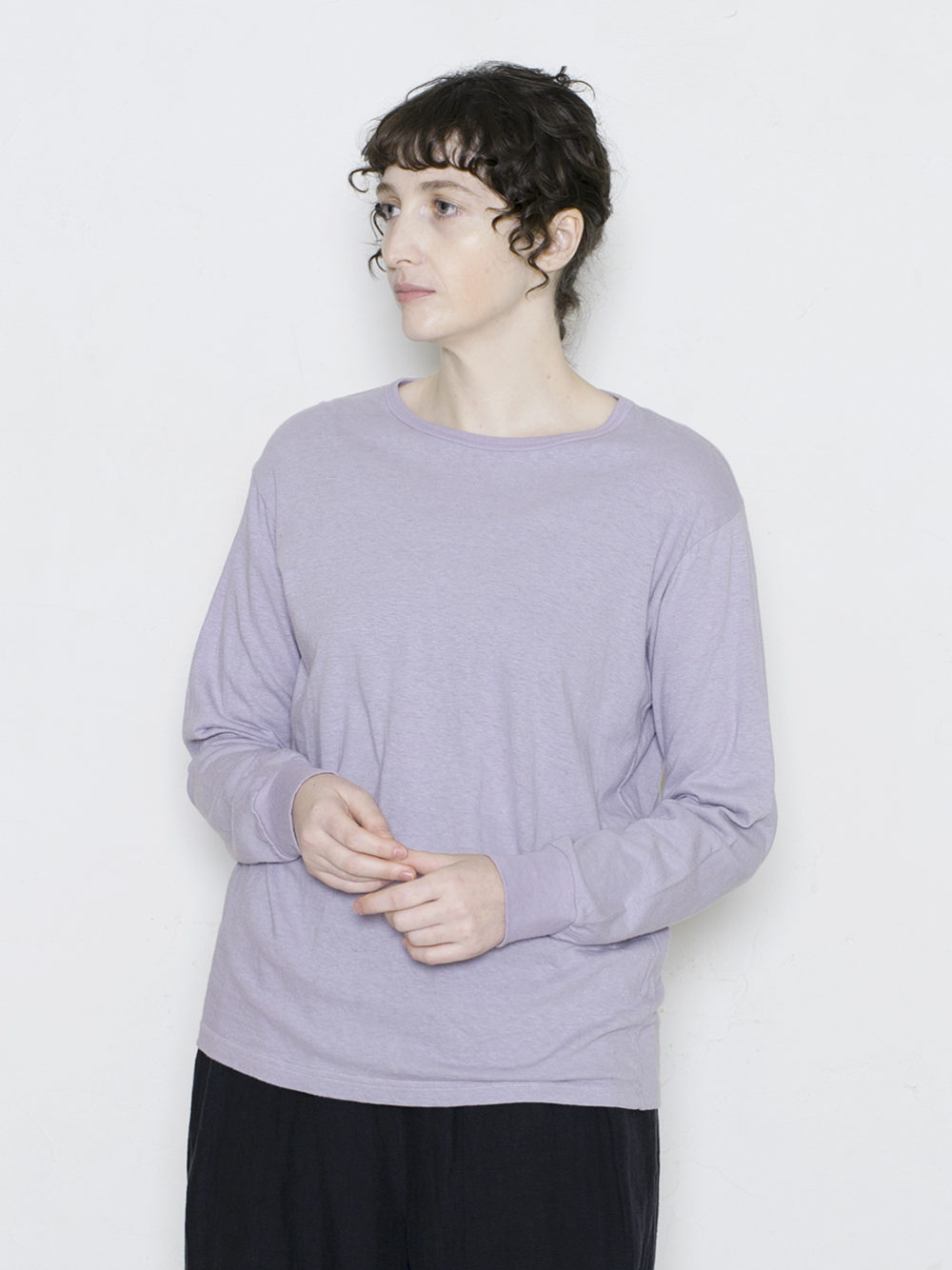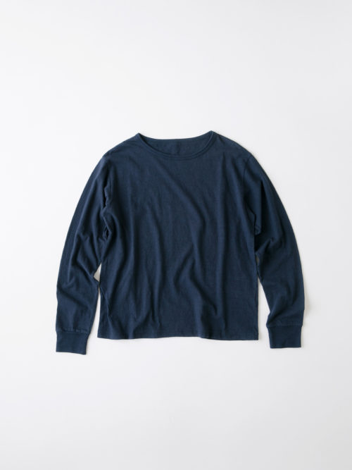 Cotton Linen Plainstitch オブロングネック長袖Tシャツ