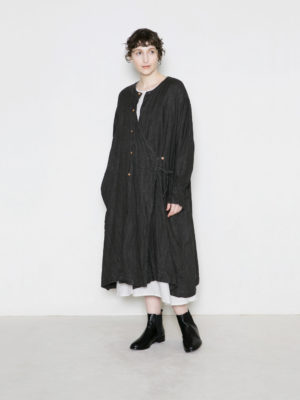Indigo/SUMI Coating Linen 2way前開きドレス