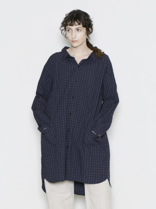一見シンプルなデザインですが、前ボタンと後ろボタンを外すとオフネック風に着ることができます。