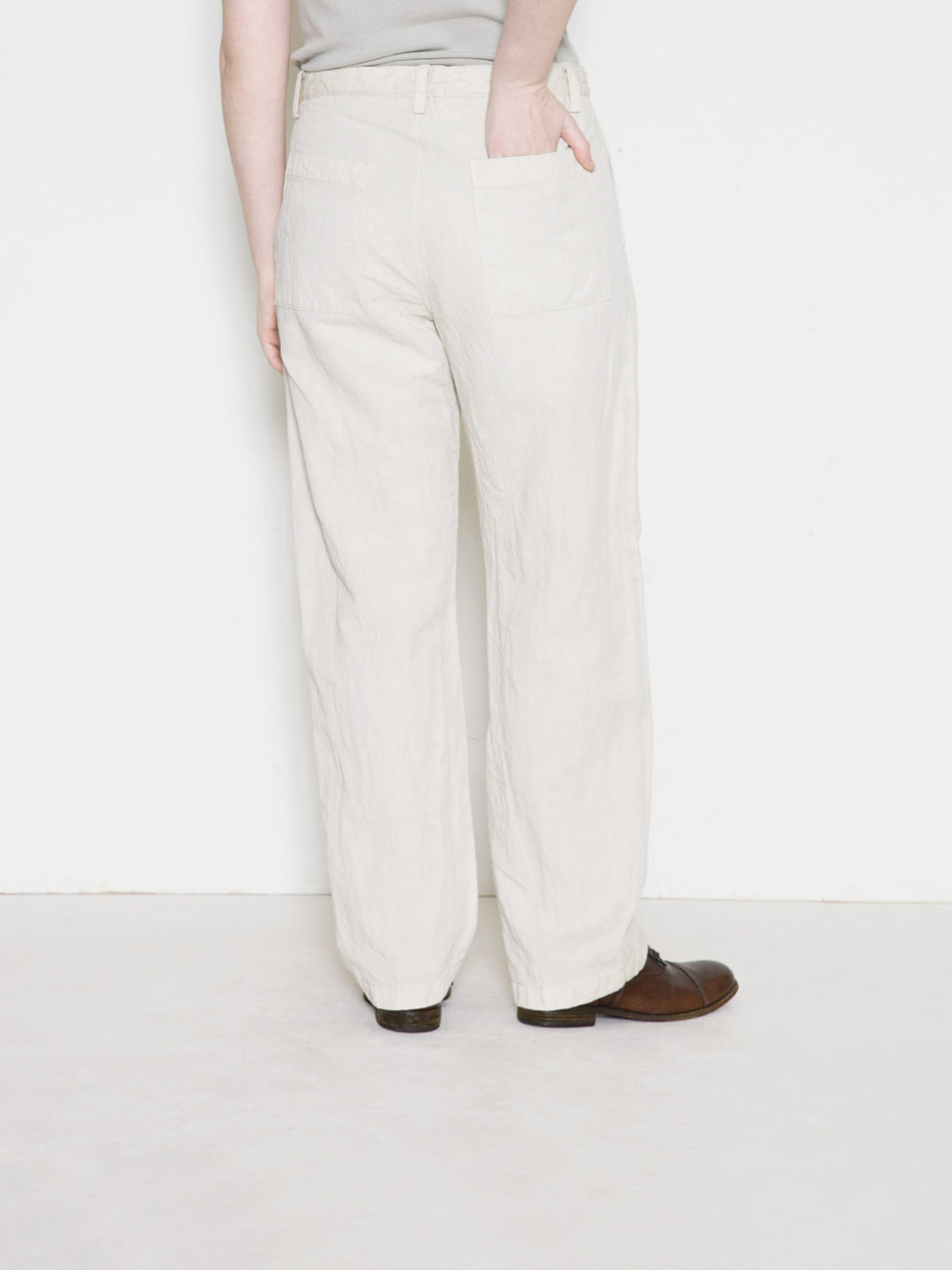 経年変化したような仕上がりを目指して生地を洗い込み、全体に若干ポコポコとしたシボ感を出しました。