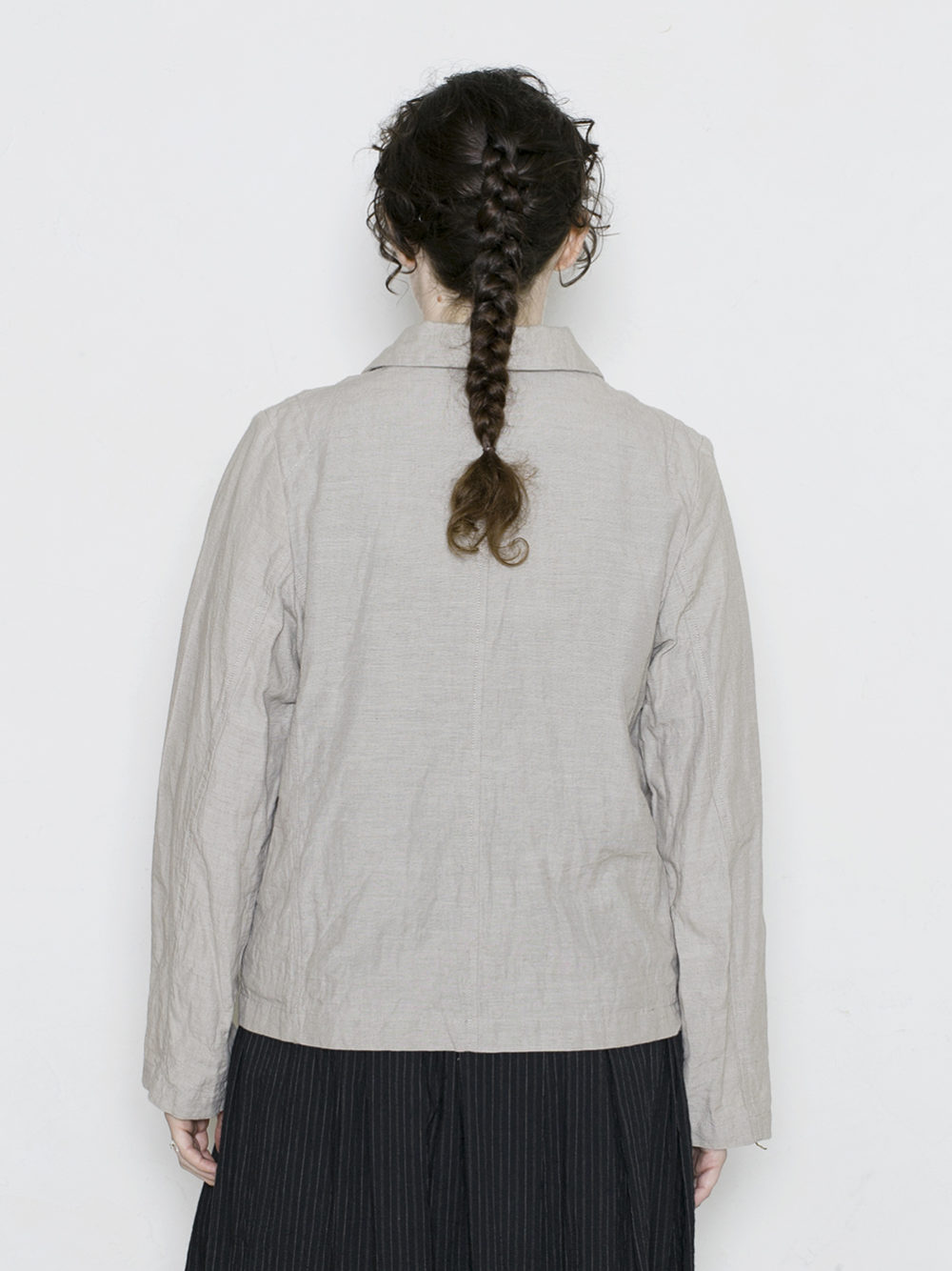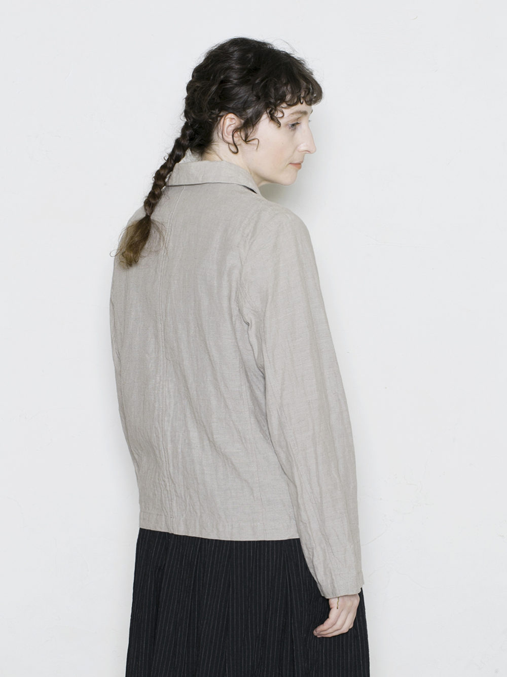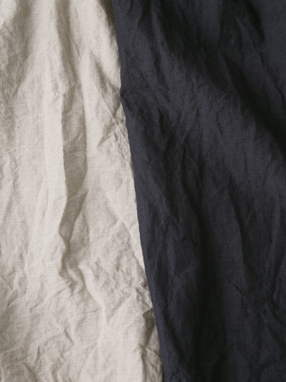 リネンをベースに、コットンとリネンラミー混紡糸を使い、ほどよいハリ感を出しました。