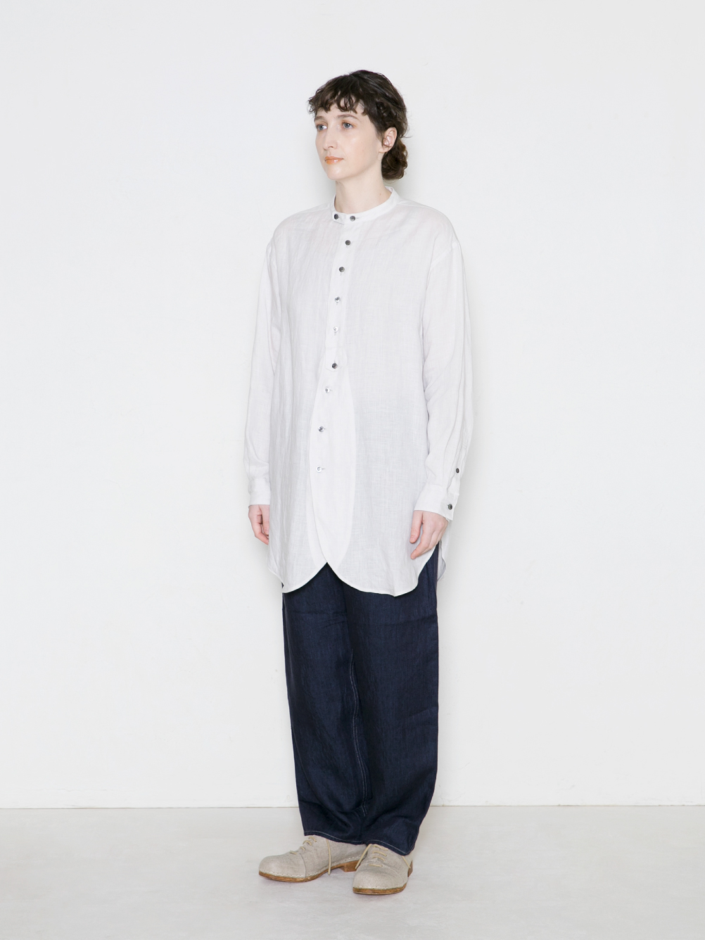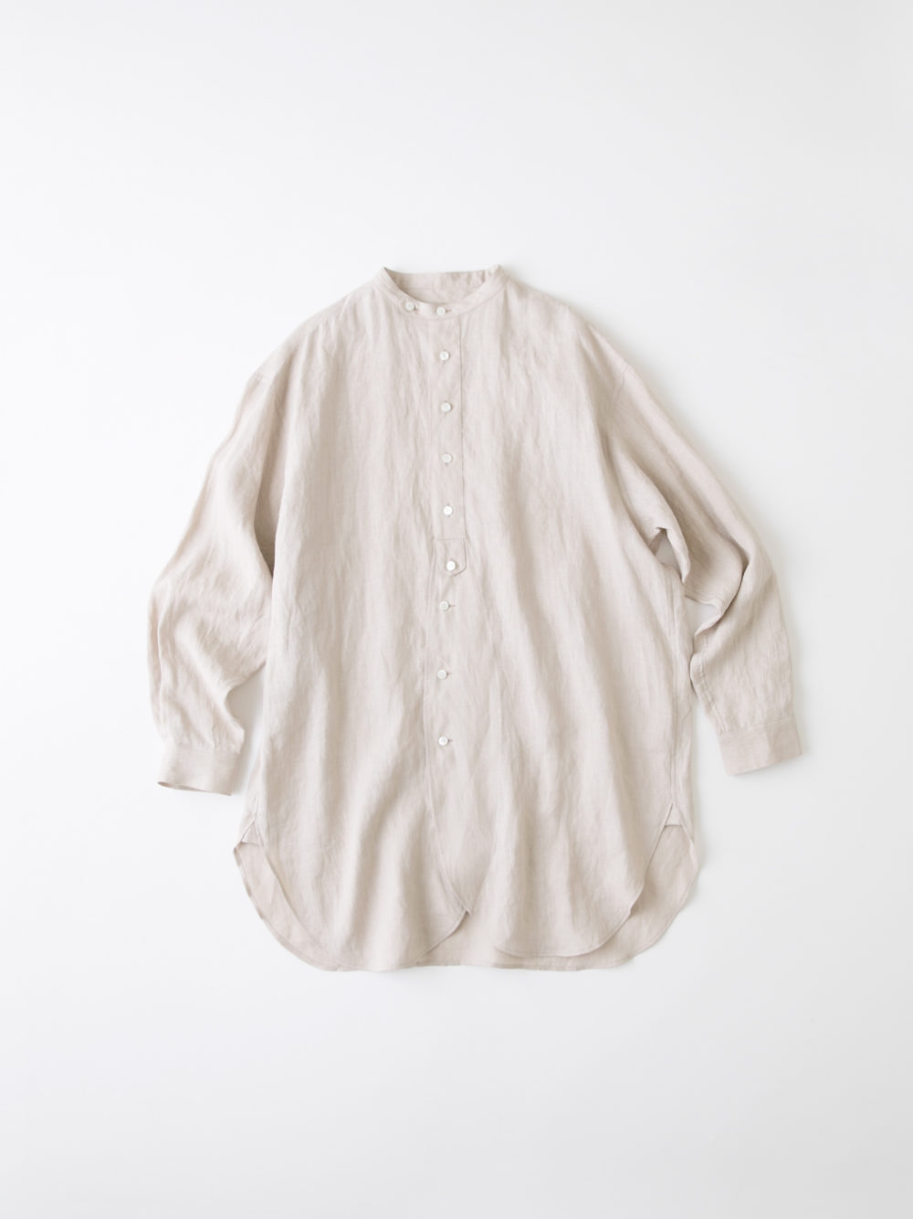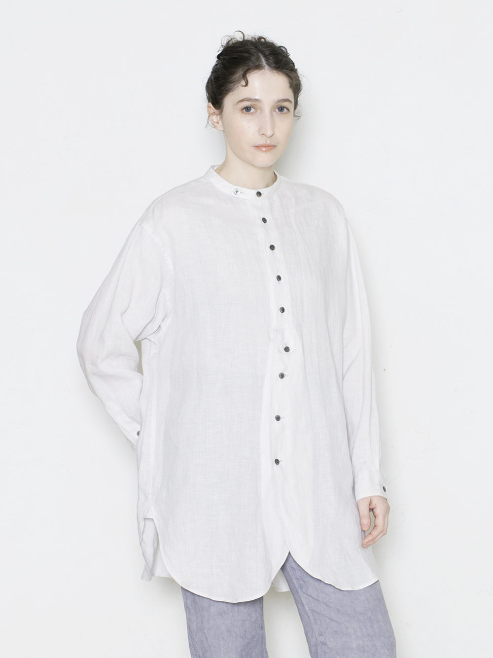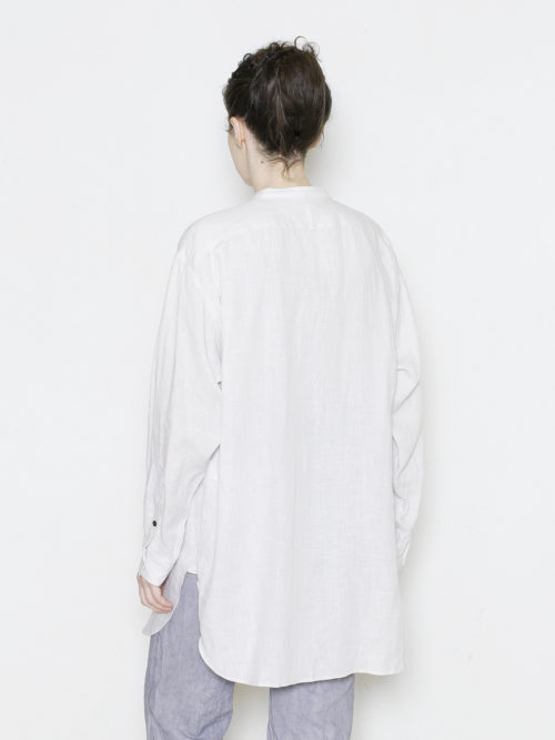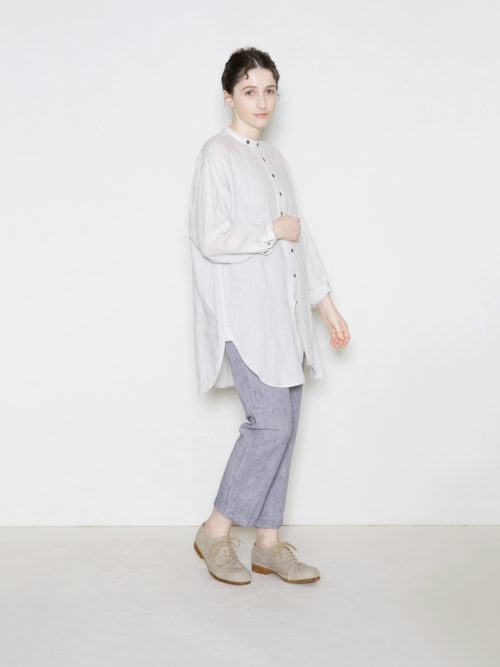 シンプルで合わせやすく、前を開けたり、無造作に袖をまくった羽織りスタイルなど、年間を通して様々なアレンジを楽しめる1枚です。