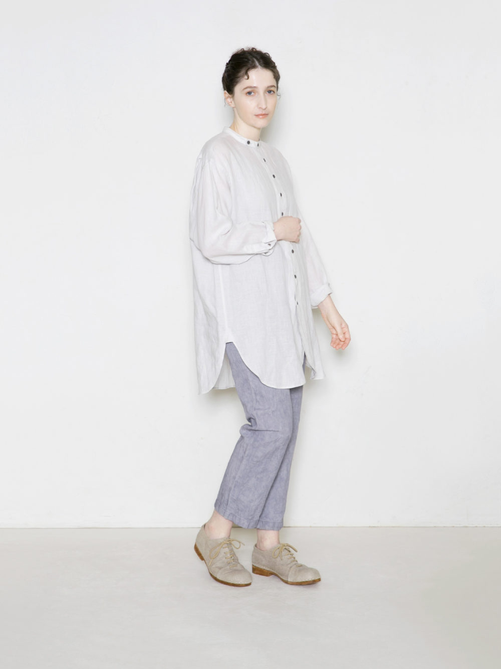 着用を重ねるとリネン特有の柔らかさがより感じられ、洗いざらしでもカジュアルになりすぎません。