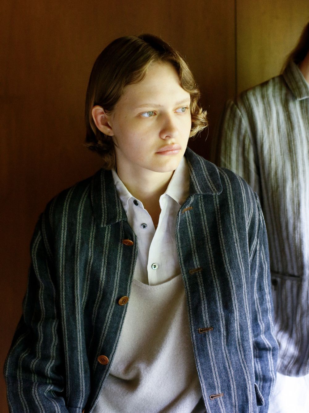 毎シーズンリリースしているのが、オリジナルの『Vintage Stripe』シリーズ。この秋もヴィンテージのツイード生地をリネンで再現し、ブルゾンとパンツを仕立てました。どこか懐かしさを感じるノスタルジックな雰囲気が魅力です。
