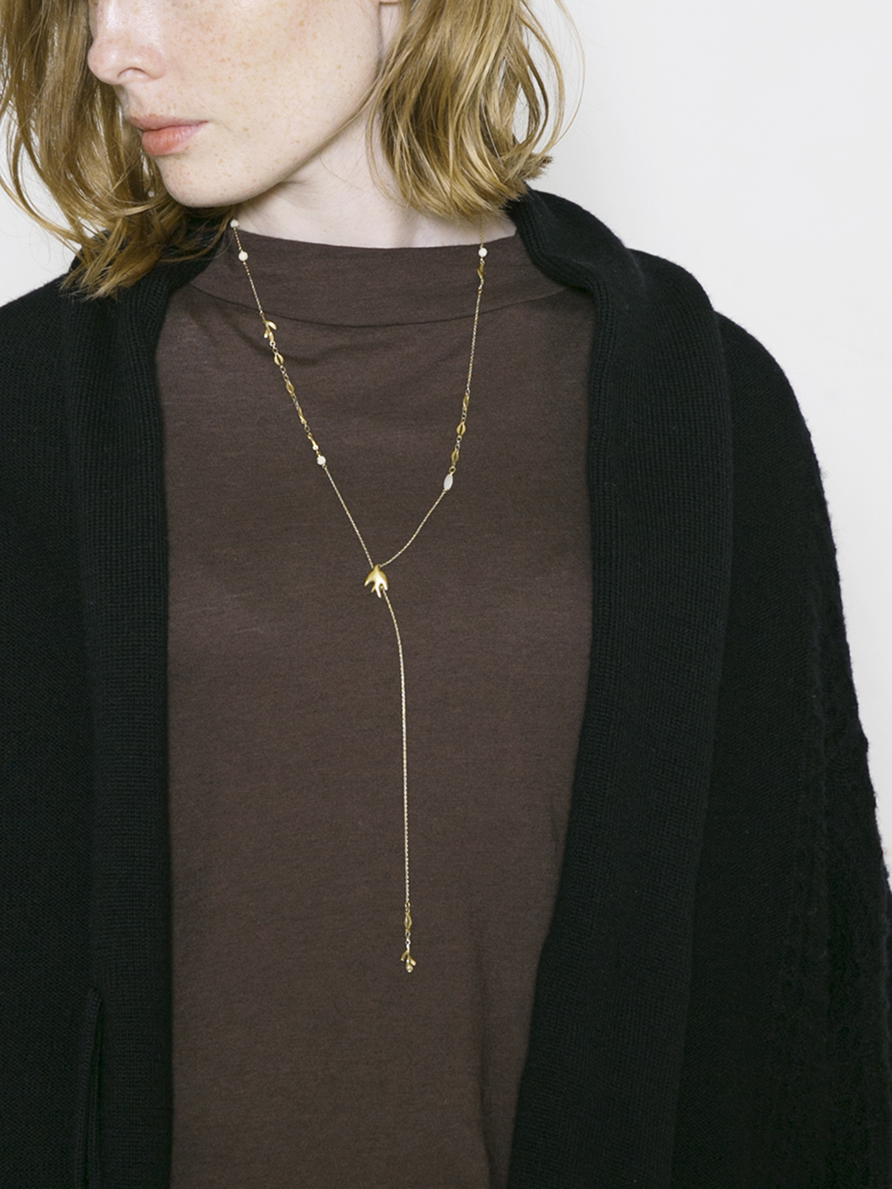 チェーンにとまったツバメは、スライドが可能で、お洋服の首周りの開きに合わせて、細かな調整ができます。華奢なチェーンが軽やかに揺れて、目を惹きます。