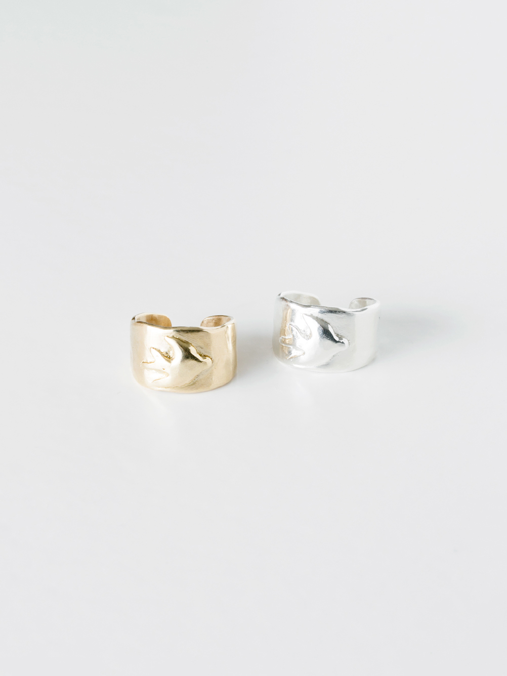 幅広のベースに、ツバメをのせたリングです。立体的にツバメが浮かび上がるデザインが、より存在感を出しています。