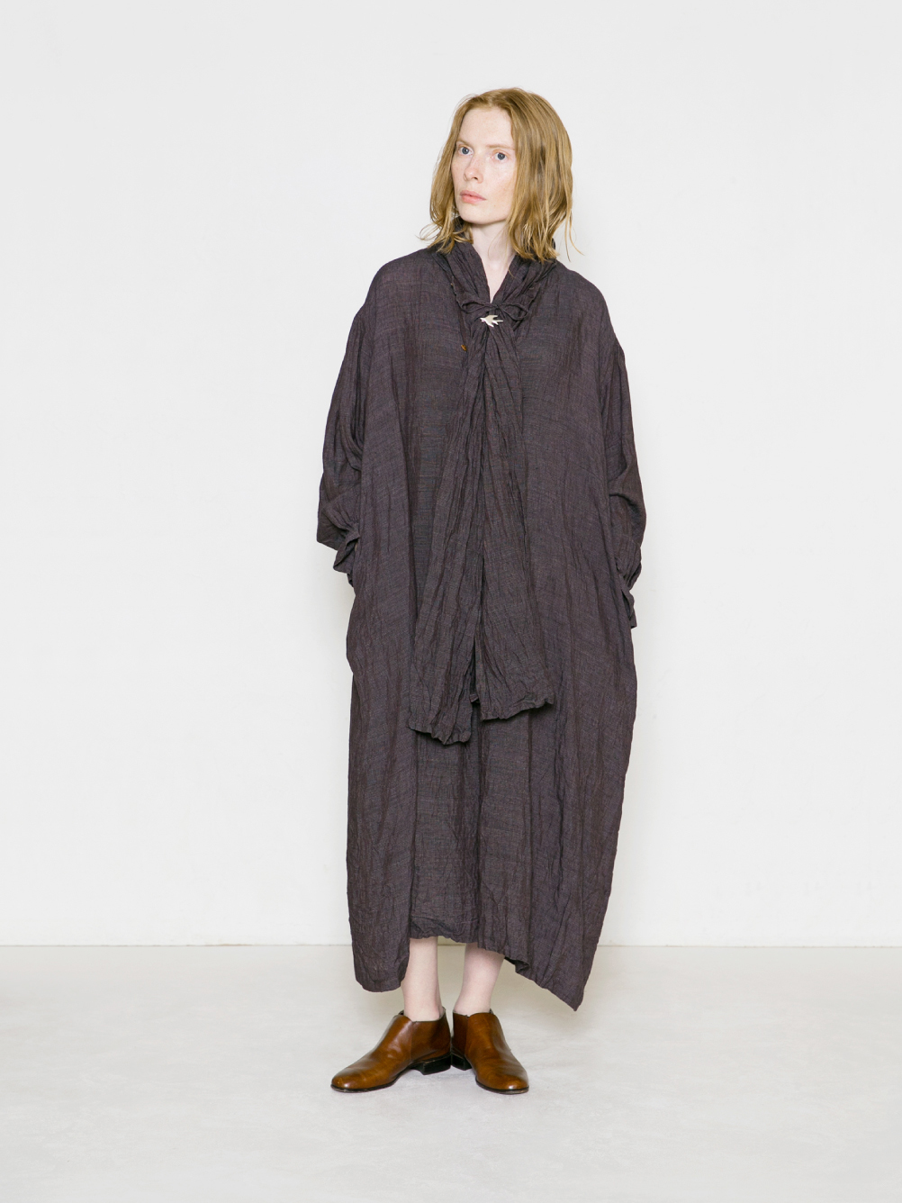 結ぶ位置で長さを調整できるので、お手持ちのネックレスとの重ね付けや、衿あり衿なしなど、どんなトップスにもコーディネートしやすいアイテム。これからの厚みのある秋冬服にもマッチする、存在感のある1点です。
