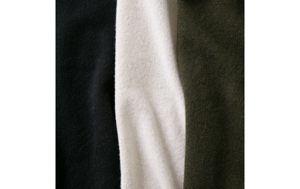 カシミヤの中でも世界最高基準で厳選した、上質な原料を100%使用した『Pure Cashmere』シリーズ。優しい手触りと、膨らみ豊かなバルキー感が特徴です。ふんわり軽い着心地ですが、しっかりとあたたかさを感じられる心地よいアイテムをご用意しました。