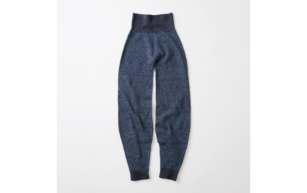 昨年も好評だった、ほどよい厚みで秋冬にも重宝するリネン混のニットボトムを2型ご用意しました。つなぎ目のないホールガーメント製法で、一度穿くと手放せなくなる心地良いアイテムです。今シーズンはウエストとレッグ部分を、より馴染みの良い同系の配色にしました。