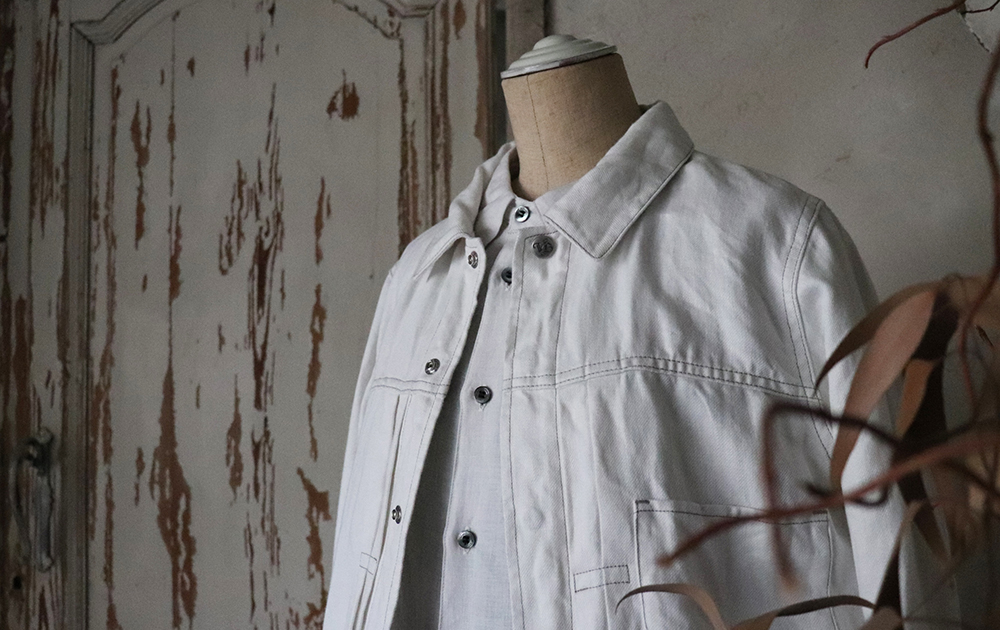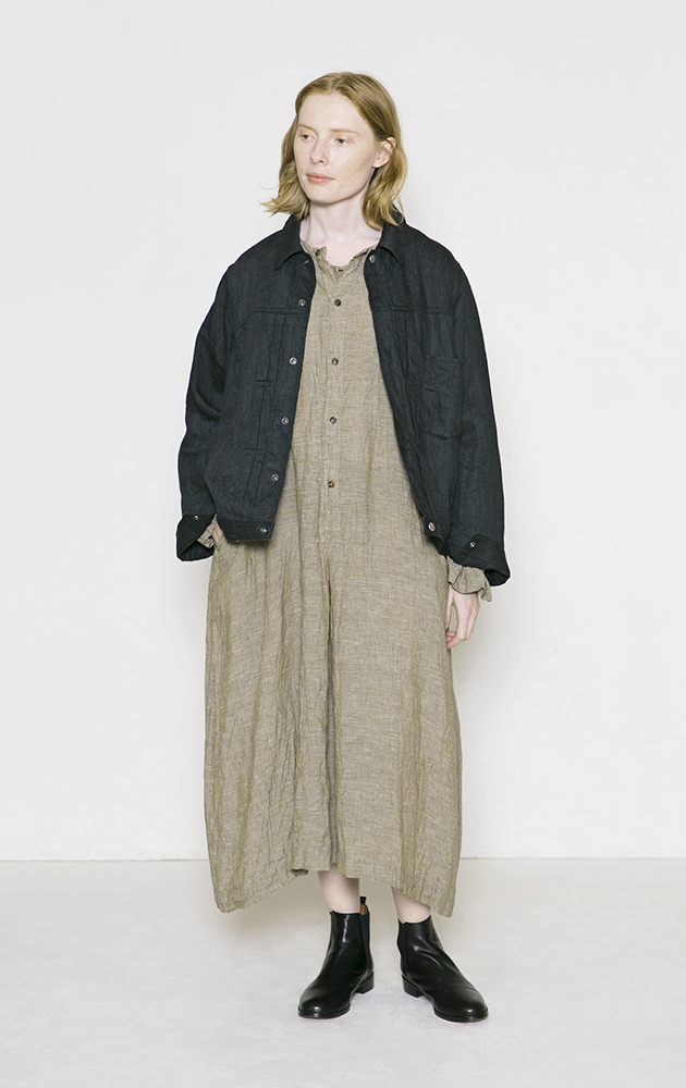 ブランド初期から作り続けている、コルトレイクリネン100%のオリジナルリネンデニムシリーズ。着用を重ねるたび、体に馴染み、リネンならではの味わいが増してくるので、自分だけの特別な1着に育てていただけるアイテムです。こちらは3サイズ展開で、体型に合わせて選んでいただくのはもちろんですが、コンパクトに着たり、オーバーサイズに羽織ったりと、好みのスタイルによってサイズを選んでいただくのもひとつです。