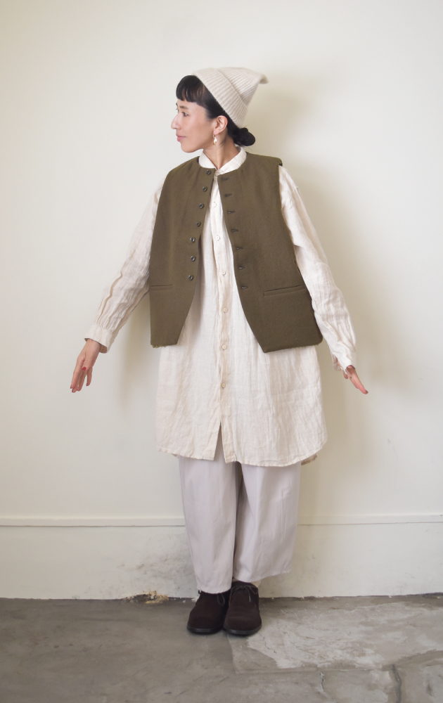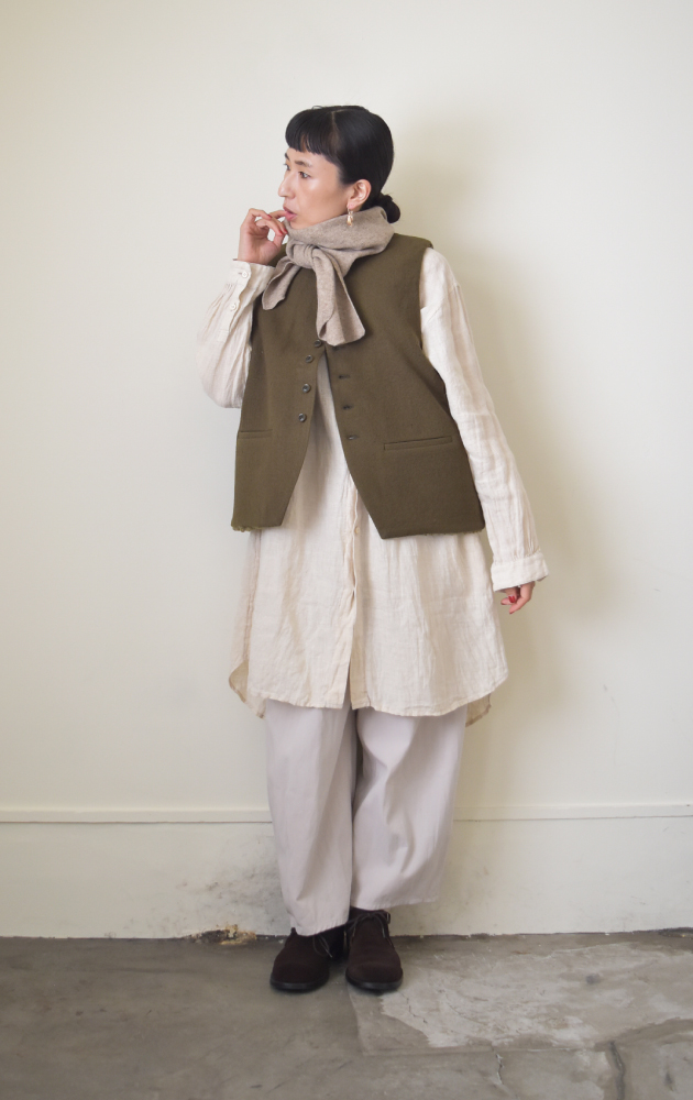 ジレ/Washed Linen Ramie Wool ロングジレ