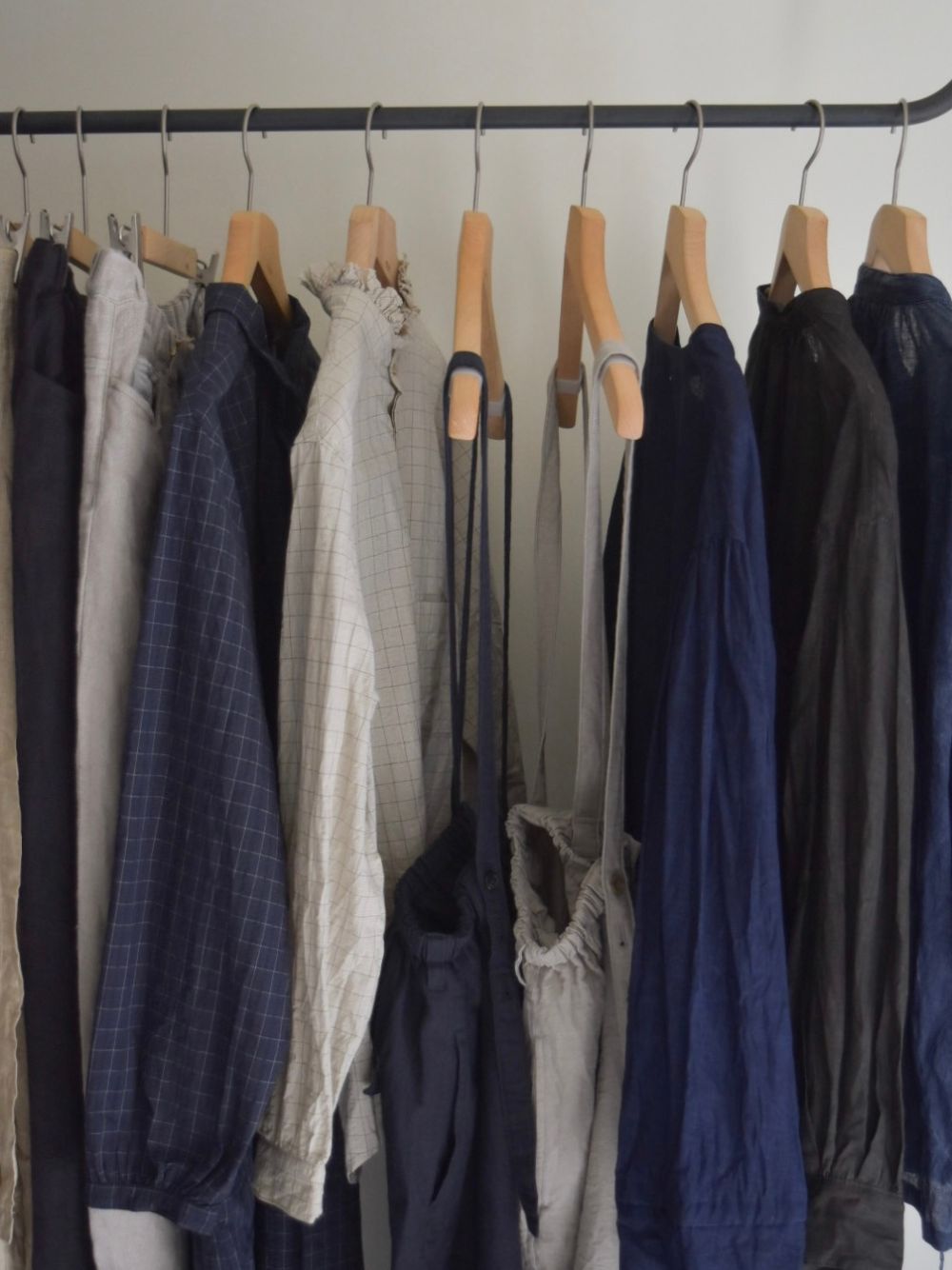常々、生地やディティールのどこかしらに私どもらしいアクセントをと頭をめぐらせているVlas Blommeですが、今回は淡い色合いでムラ染めを施し、これからやってくる季節への気持ちを表現してみました。
