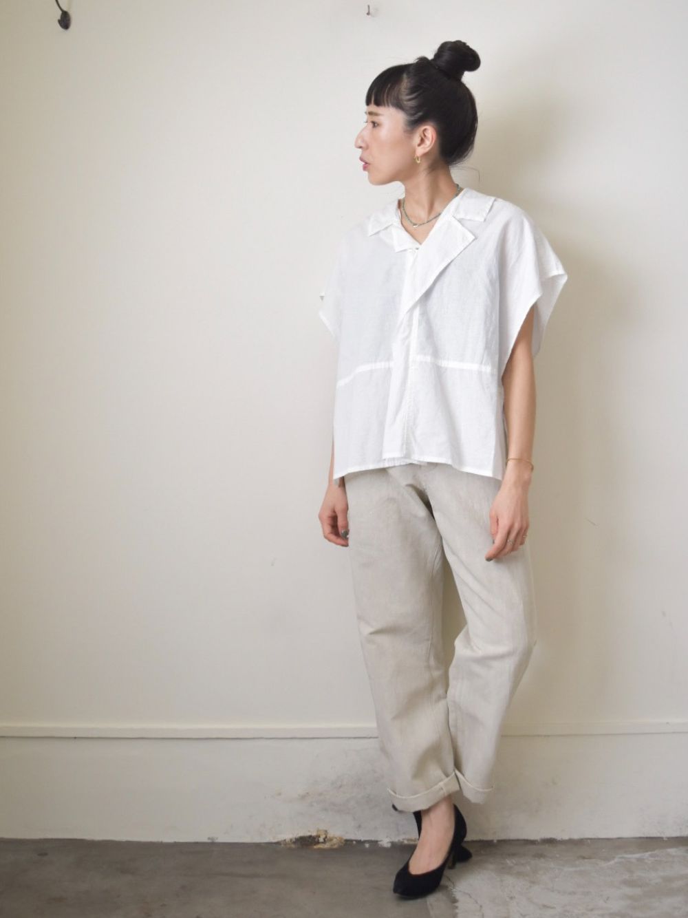 最後は、着丈が短く軽やかな印象のサルエルパンツ。ざっくりとラフに皆さまならではの着こなしを楽しんでいただくべくゆったりサイズをチョイスしました。