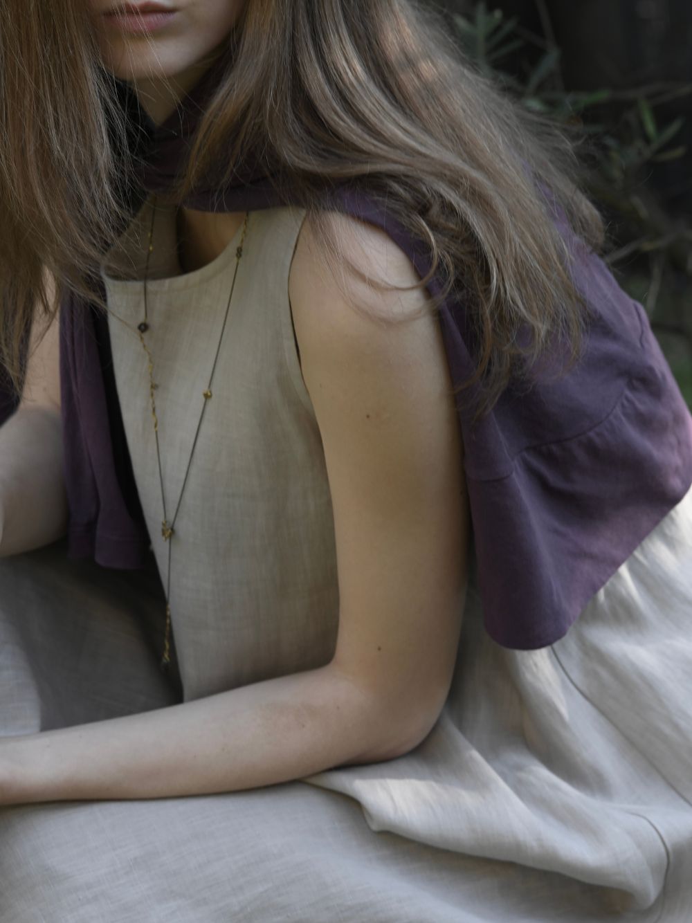 しっかりしているのに薄くて、ドライタッチでシャリ感があるカットソー。触ってみるとコットン100%で柔らかだけれど、なんだか不思議な感触です。マットなカラーリングは、セージ/紫根/スイカズラなどの植物染めを施しています。どこかクールな印象のカットソーは、見た目にも涼しげです。