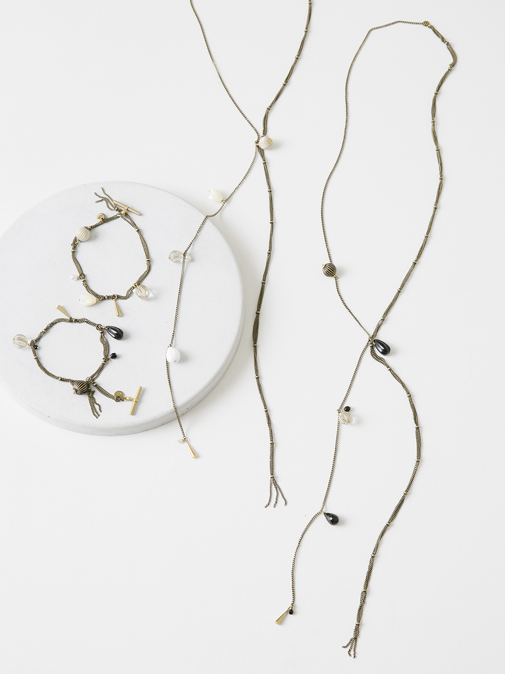 あたたかさとともに軽くなってくるスタイリングには、ポイントにアクセサリーを合わせてみて。今シーズンは、お守りのように身につけたい『Clover』シリーズと、お洋服のボタンに見立てたユニークな『Bouton』シリーズをご用意。どちらも遊び心を感じるちょっとしたギミックがあります。