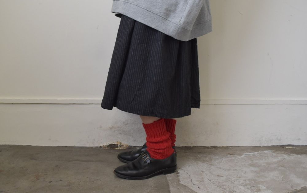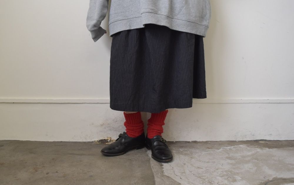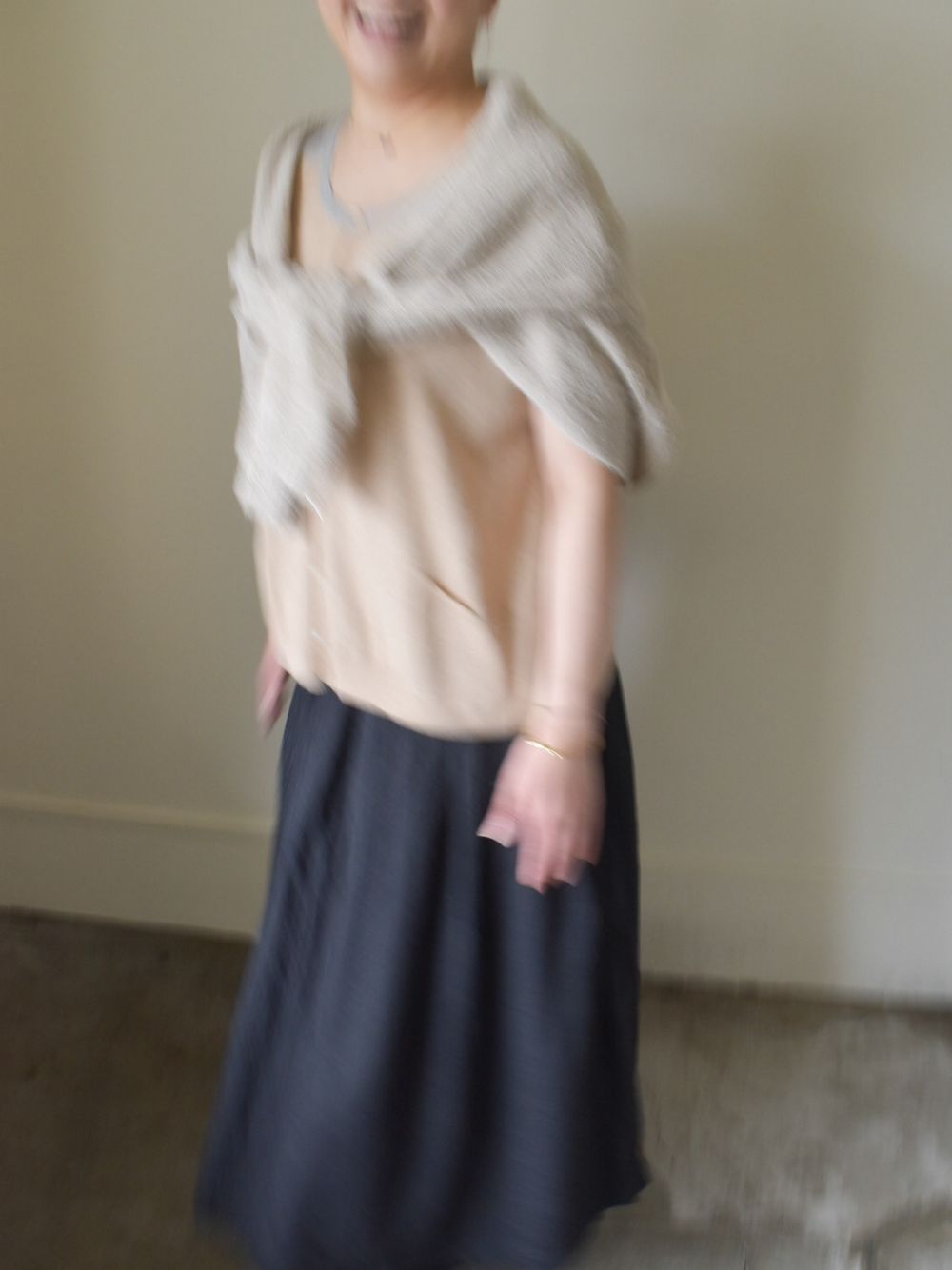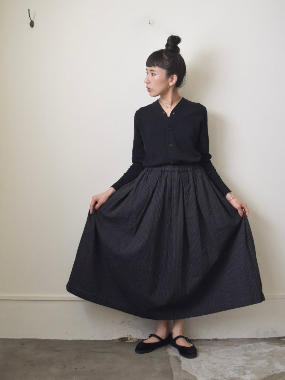 スカートは、生地の柔らかさとギャザーの分量がぴったりマッチして絶妙な動きと程よいボリュームにひろがったり落ち着いたり。この生地の特徴を最大限に生かせるギャザー分量でお作り出来たとスタッフ一同ほくほくうれしくなっております。